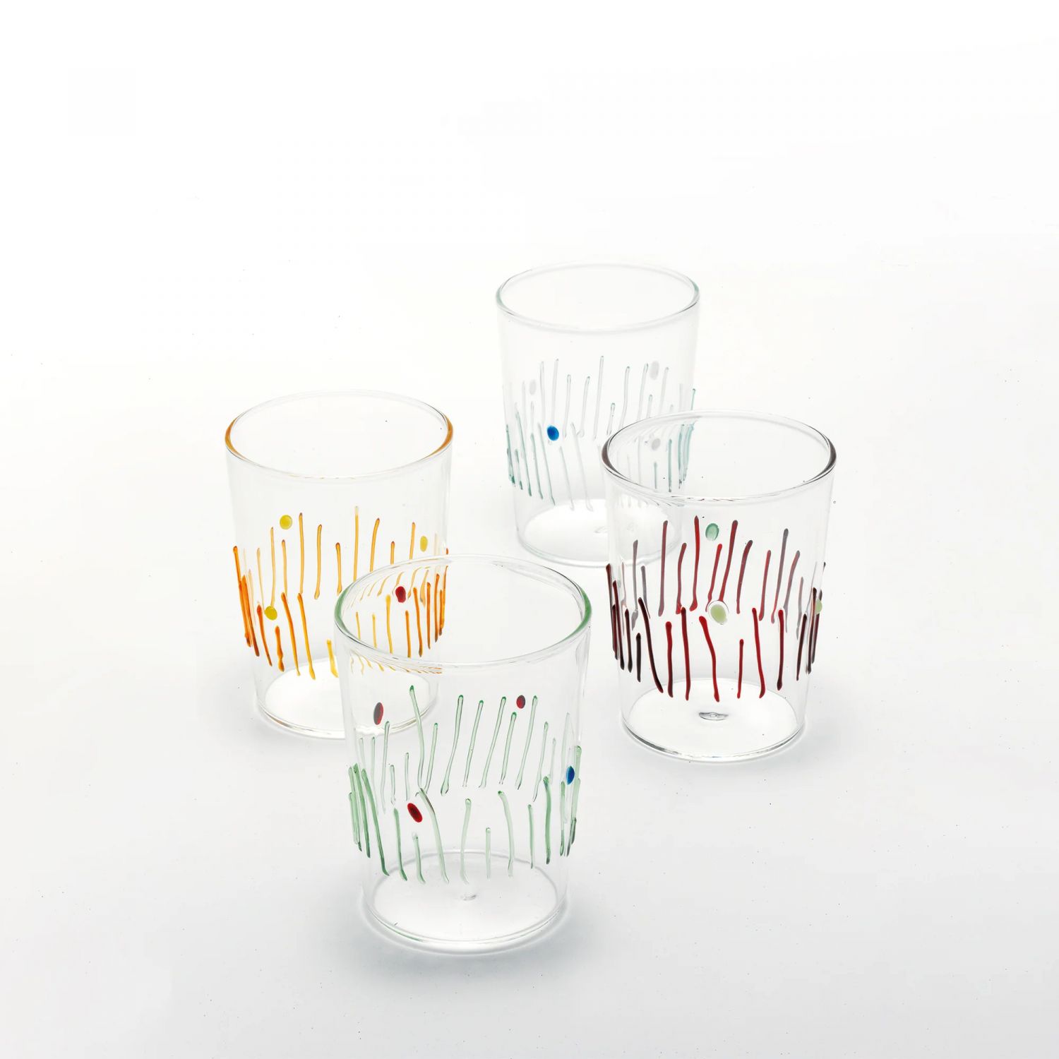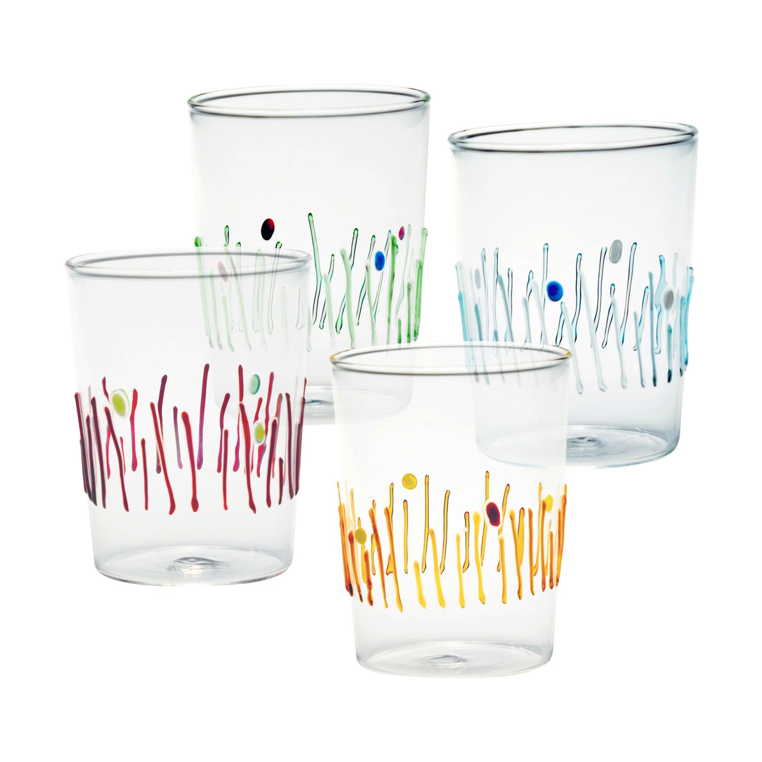 Handgefertigt aus farbigem Borosilikatglas, stoßfest, spülmaschinen- und mikrowellengeeignet – diese Gläser vereinen Stil und Funktionalität. Jedes Set enthält ein komplettes Jahr voller Farben, bereit, jede Mahlzeit mit Energie, Freude und einem Hauch Natur zu bereichern.