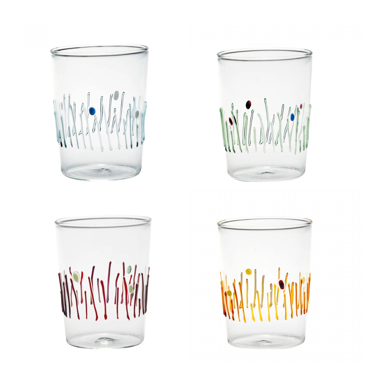 Bringen Sie Farbe auf Ihren Tisch mit den 4 Jahreszeiten-Gläsern von Zafferano! Vier einzigartige Farbtöne, die die Magie jeder Jahreszeit einfangen: das frostige Blau des Winters, die warme Sonne des Sommers, die gemütlichen Töne des Herbstes und die frische, lebendige Palette des Frühlings.