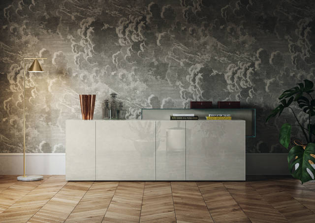 Hier ist ein weiterer Vertreter des wunderbaren 36e8-Systems der Marke Lago: 36e8 Sideboard. 36e8 Sideboard, modulare Anrichte, modernes, schlichtes und elegantes Design, bei dem ein dekoratives, im 45°-Winkel gearbeitetes Aluminiumfiligran, das schöne Profil seiner Tür und eine Innenlackierung hervorstechen. Das in Geschmack und Größe anpassbare 36e8 Sideboard steht für Reinheit, Design, Raffinesse und hohe Fertigungstechnologie. Das 36e8 Sideboard ist der überraschend immer einzigartige Behälter.