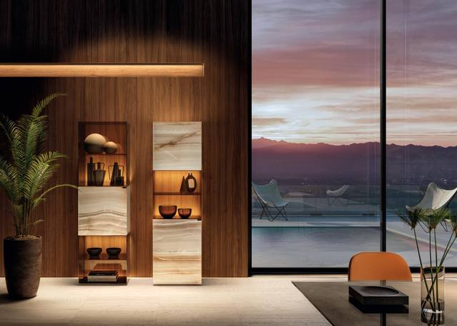 Das 36e8 Glass Sideboard spielt mit der außergewöhnlichen Transparenz seiner Kristalle, dem integrierten LED-Beleuchtungssystem und den verschiedenen vorgeschlagenen funktionalen Lösungen.