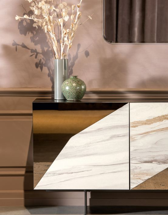 Alcione ist die Anrichte mit Türen aus der Tonin Casa Kollektion. Ein modernes Möbelstück mit einer traditionellen und einfachen Linie. Seine Besonderheit ergibt sich aus der ungewöhnlichen Verarbeitung der Türen: Die Verschmelzung der verschiedenen verwendeten Materialien erzeugt ein kontinuierliches Spiel von Helligkeit, Reflexionen oder Kontrasten, um es besonders und dekorativ zu machen. Alcione ist Neuheit, Persönlichkeit, Raffinesse, Alcione ist das Made in Italy der Exzellenz.