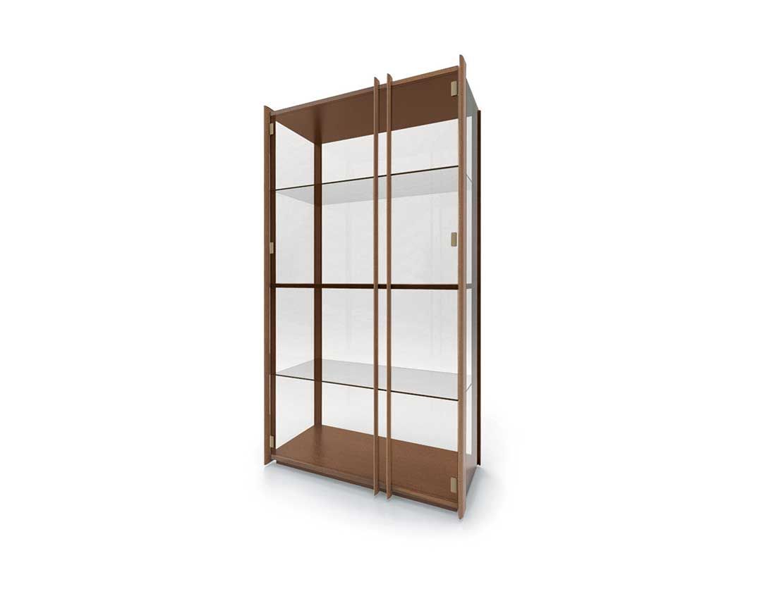 Geschmackvolles Zubehör, wurde vom Pacini & Cappellini zur Salone del Mobile 2018 aussgestellt: Bay, die Vitrine (Anrichte). Die Wandvitrine (Wandanrichte) Bay ist ein rechteckiges Regal, angeboten in zwei Abmessungen mit einer oder zwei Türe aus 100% Glas, oder Glas mit Holzleiste.