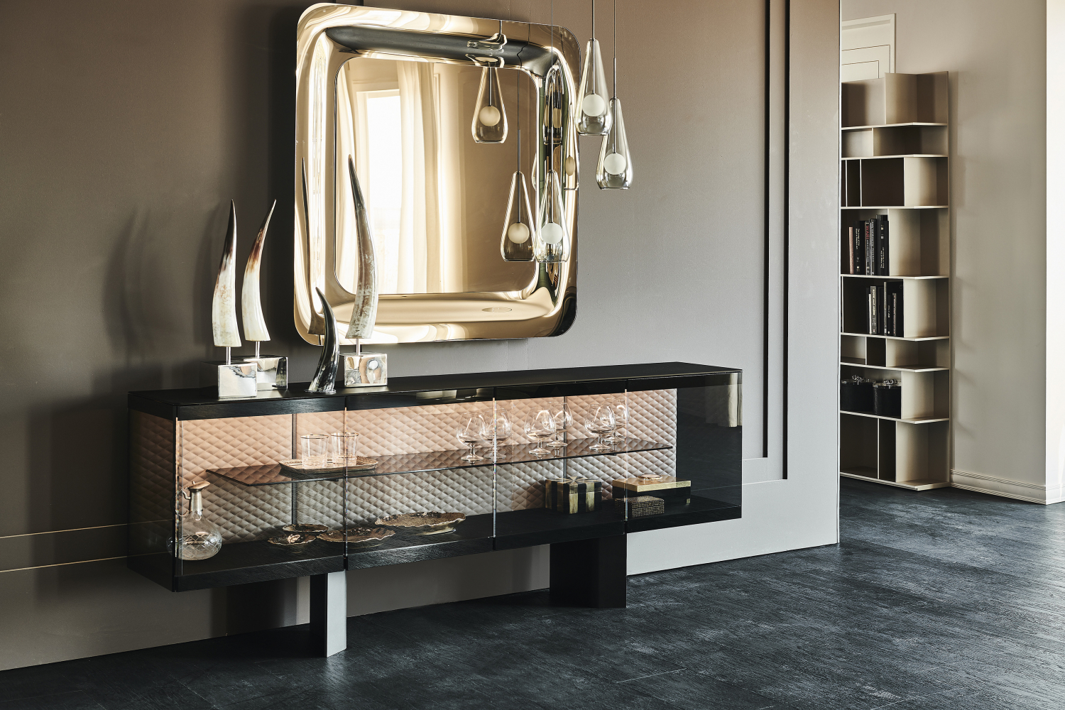 Der Name sagt schon alles: Boutique ist das prächtige Sideboard von Cattelan. Die Struktur ist aus lackiertem Stahl, die innere Rückenlehne ist mit Kunstleder oder Leder mit Steppung bezogen, alles andere ist aus Kristall. Das Boutique Sideboard: Ein modernes Design für ein Einrichtungsgegenstand von unbestreitbarer Raffinesse.
