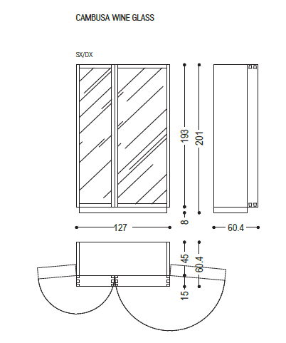 127/254 x 60,2 x h 201 cm Cambusa glass