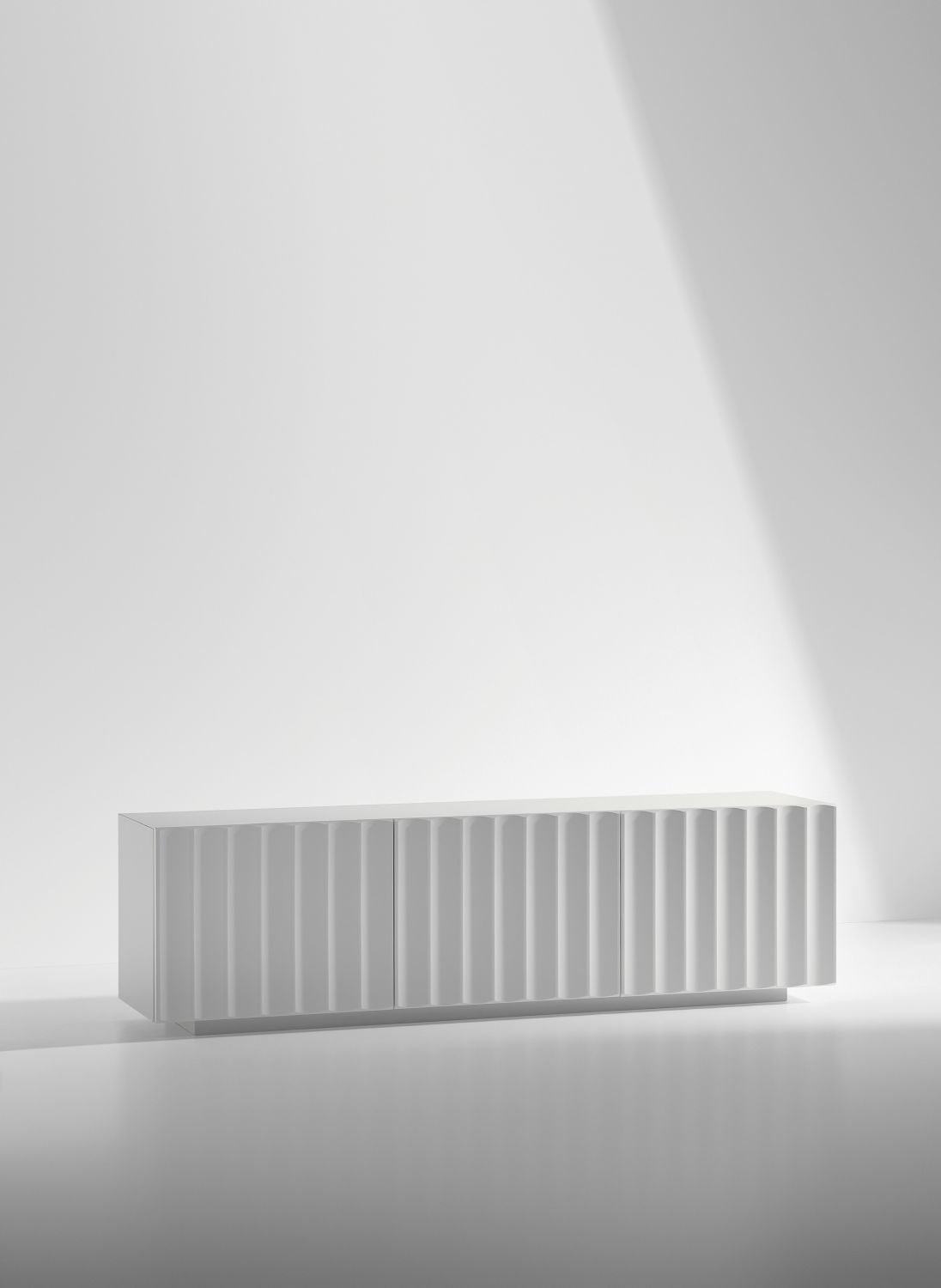 Dorian ist die Anrichte, das in zwei Höhen und zwei Längen angeboten wird. Dorian ist eine moderne Aufbewahrungseinheit, die durch Türen geschlossen wird, die mit sehr einfachen vertikalen Linientexturen verziert sind; Seine Struktur besteht aus lackiertem Holz und wird von einem Sockel oder vier Metallfüßen getragen. Eleganz und Schlichtheit werten es auf, die Qualität der Materialien und die avantgardistische Verarbeitung machen Dorian zur Anrichte, die Schönheit auch noch nach einiger Zeit ästhetisch präsentiert. Dorian, das von Bonaldo signierte Möbelstück.