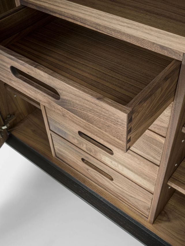 Ob Anrichte, Anrichte oder Aufbewahrungseinheit, Move High ist eine Ergänzung, die alle Umgebungen, auch moderne, elegant einrichtet. Move High ist faszinierend, optisch besonders, die Holzkonstruktion hat ein traditionelles zweitüriges Design, der Innenraum ist in seiner Einfachheit hervorragend. Die Verarbeitung mit der raffinierten Schwalbenschwanzverbindung und den anderen Details ist wirklich bewundernswert. Move High, das zeitlose Möbelstück, das den Wohnraum einzigartig macht. Riva-Signatur 1920.