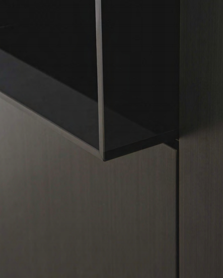 Der Anrichtetisch Theca, ein modernes und einzigartiges Design. Der Anrichtetisch Theca ist ein Einrichtungselement, das auf vollen und leeren Flächen mit glänzenden, matten, transparenten oder texturierten Oberflächen spielt. Das Ergebnis ist ein Kontrast zwischen Kombinationen von höchster Qualität und Raffinesse. Die Innenfächer sind für DVD-Player und Decoder-Boxen elektrisch verkabelt, die Ablagen können entfernt werden und wirken wie Tabletts für Gläser und Flaschen. Theca, der von Poliform gezeichnete Anrichtetisch.