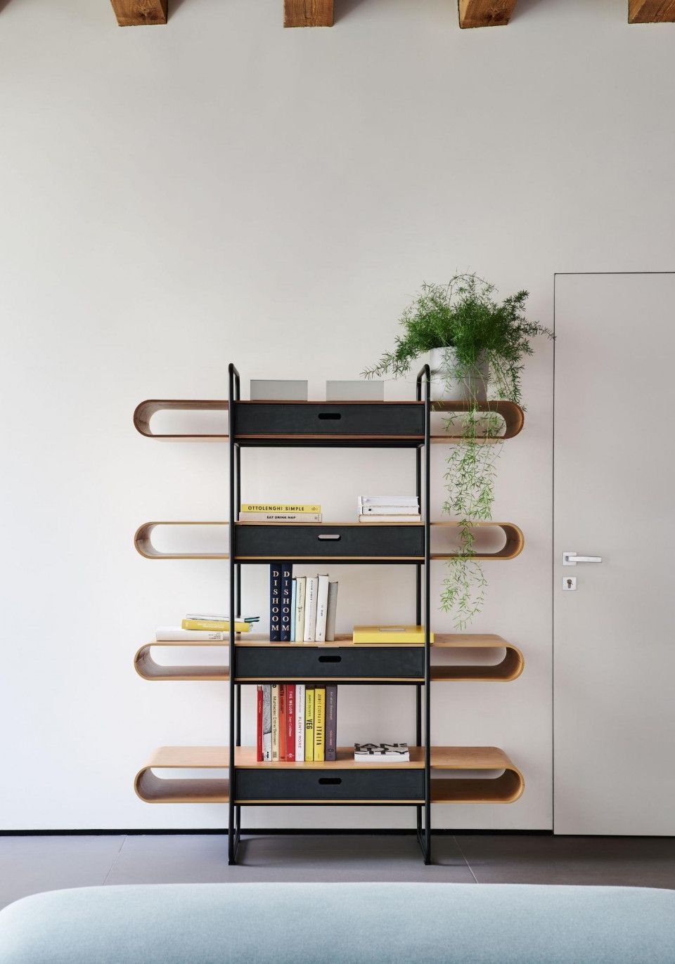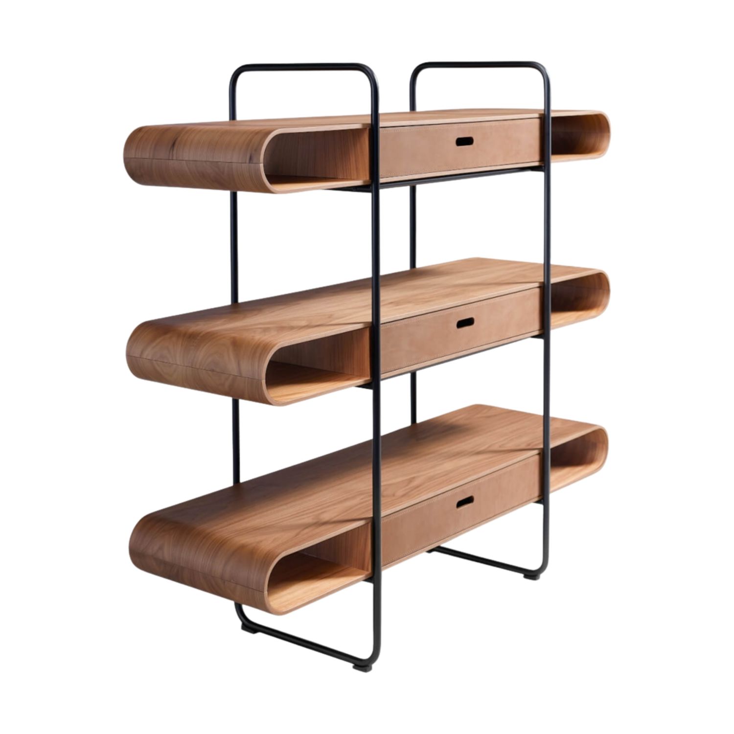 Das Apelle Bücherregal ist ein raffiniertes Spiel von Voll und Leer, bei dem die rechteckigen Regalböden mit abgerundeten Kanten im Raum zu schweben scheinen, getragen vom dünnen Metallgestell. Die zentralen Schubladen unterbrechen elegant die Leere, während jedes Regal Leichtigkeit und Harmonie in die Komposition bringt. Die Modularität macht das Bücherregal einzigartig: Es kann mit einem einzigen Regalboden und einer Schublade beginnen, und weitere können oben hinzugefügt werden, wodurch unendliche Kombinationen entstehen, die sich an jede Anforderung anpassen. Leicht, elegant, modular und überraschend harmonisch, ist das Apelle Bücherregal von Midj.