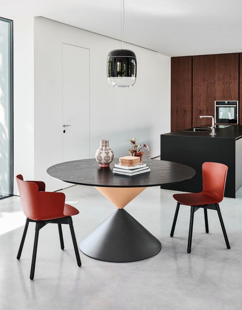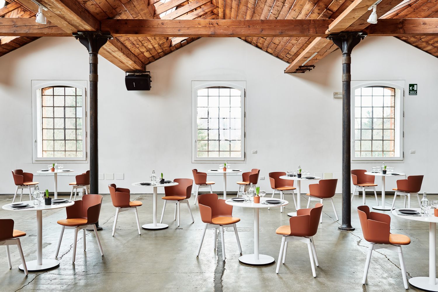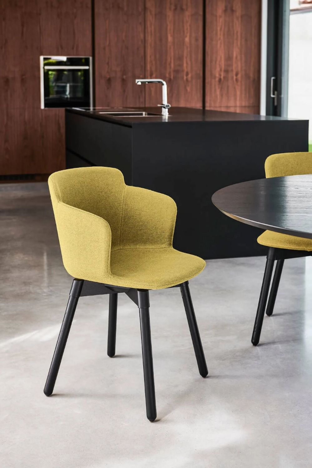 The Calla armchair welcomes you with elegance thanks to its wide seat and comfortable armrests, offering immediate comfort. Always simple and refined, it retains the collection’s signature versatility, adapting naturally to any environment thanks to the various available bases and selectable materials. The Calla armchair is by Midj.