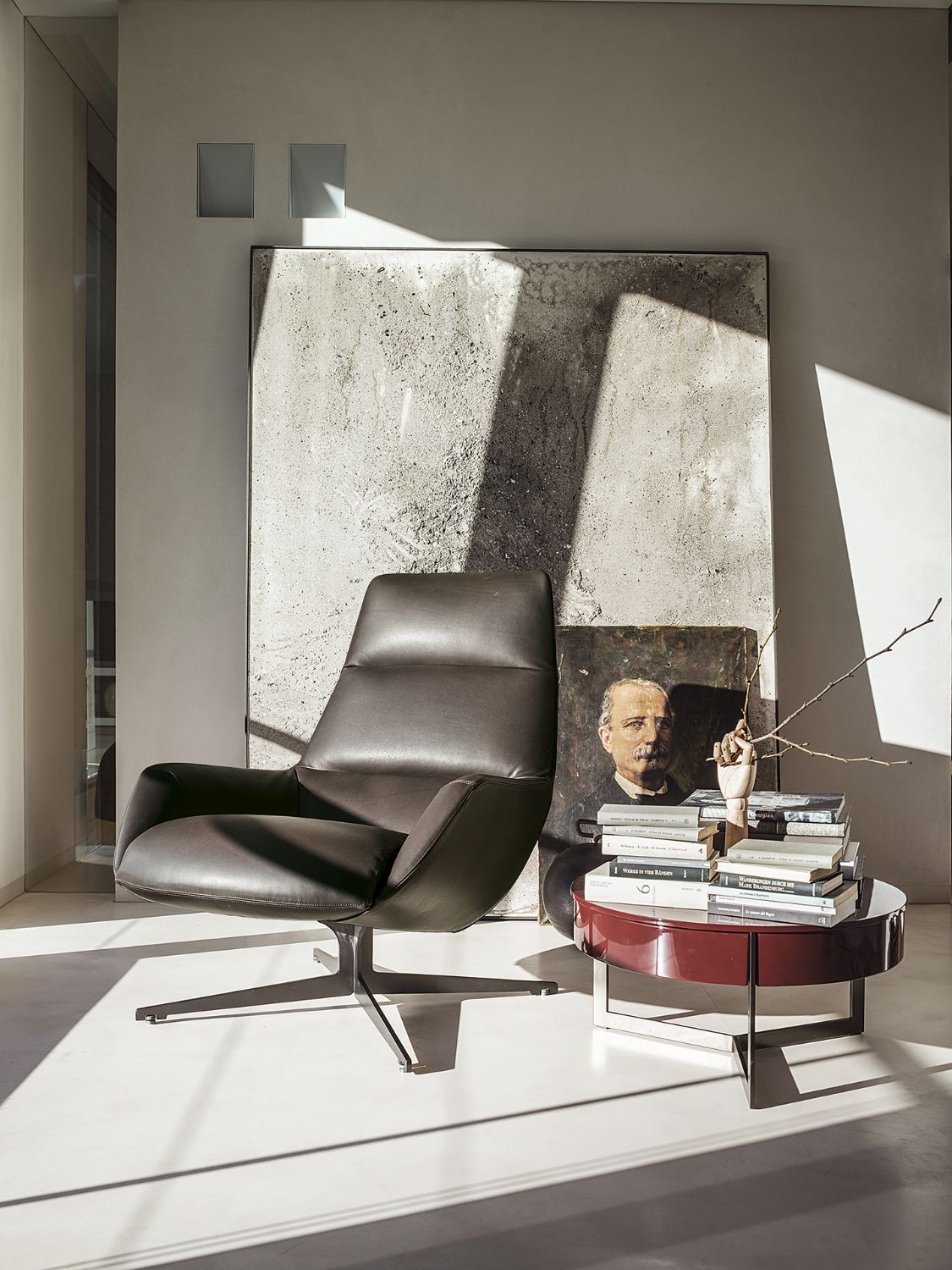 Armchair and pouf, a perfect combination, and so it is also for Lady Jane. Lady Jane is a bergère armchair, with a high backrest, two armrests, a wide seat, perfect padding, elegant materials and finishes, and a 360° swivel base. Its place is anywhere, whether private or contract, discreetly alone with its beloved pouf or combined with a sofa, or engaged and educated in meetings of any kind; its aplomb is always distinguished. Lady Jane, the Lema brand guarantees and signs it.