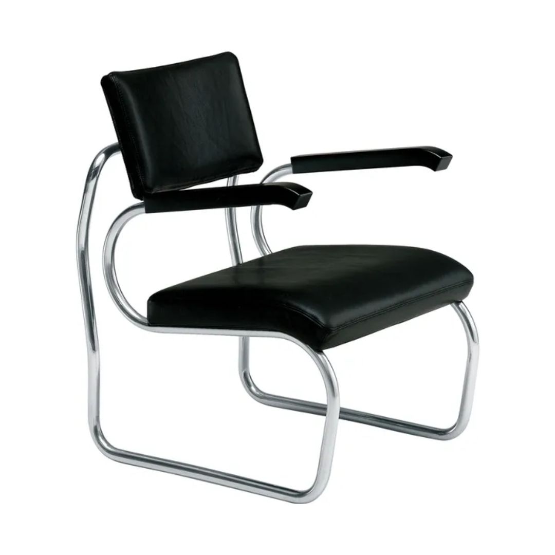 Since 1934, absolutely nothing has changed for her: it is today's Sant’Elia armchair that furnishes spaces with an aplomb and ease that only great accessories can have. Sant’Elia is the Zanotta armchair, a unique timeless design, always and perpetually original. The structure: armrests, seat and back in polyurethane covered with soft leather, the rest is 18/8 stainless steel. The Sant’Elia small armchair plays on the elasticity of the bending of the tubular used in the structure to offer perfect comfort; Sant’Elia is the great classic that amazes everyone and everywhere.