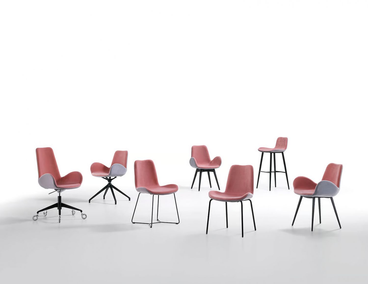 The Dalia chair is simple and elegant, yet as soon as you sit down you realize it is anything but ordinary. Seat and backrest are shaped as a single fluid, soft form, inspired by the petals of the flower from which it takes its name. The seat creates a small hollow that naturally welcomes the body, turning the act of sitting into a surprisingly enveloping experience. The different bases make it versatile and at ease in both domestic settings and more dynamic spaces. Delicate in its lines, comfortable in its shape, elegant in its character, the Dalia chair is by Midj.