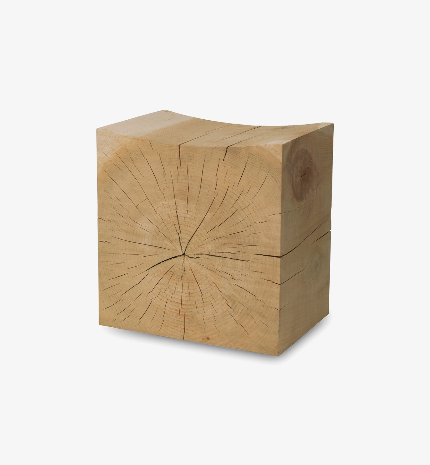 Stool made from a single block of aromatic cedar, with a concave ergonomic seat. Available in small and big models, with side grooves to make handling easier. The products are made from completely natural wood, hand-finished without the addition of any treatment. Movements, cracks and changes in the appearance of the wood are intrinsic characteristics of these items and result from the natural settlement and diverse environmental conditions.