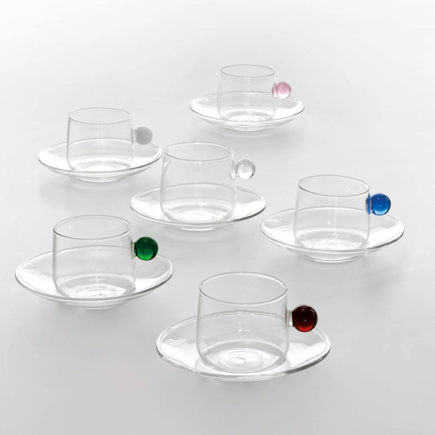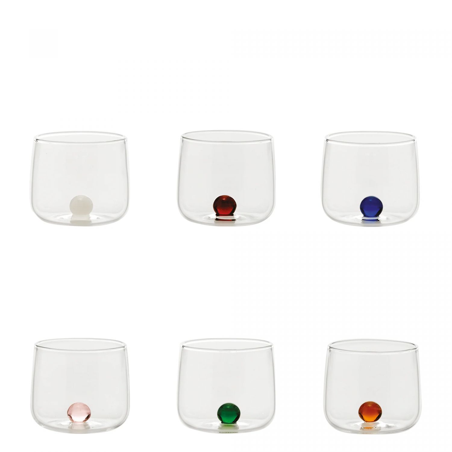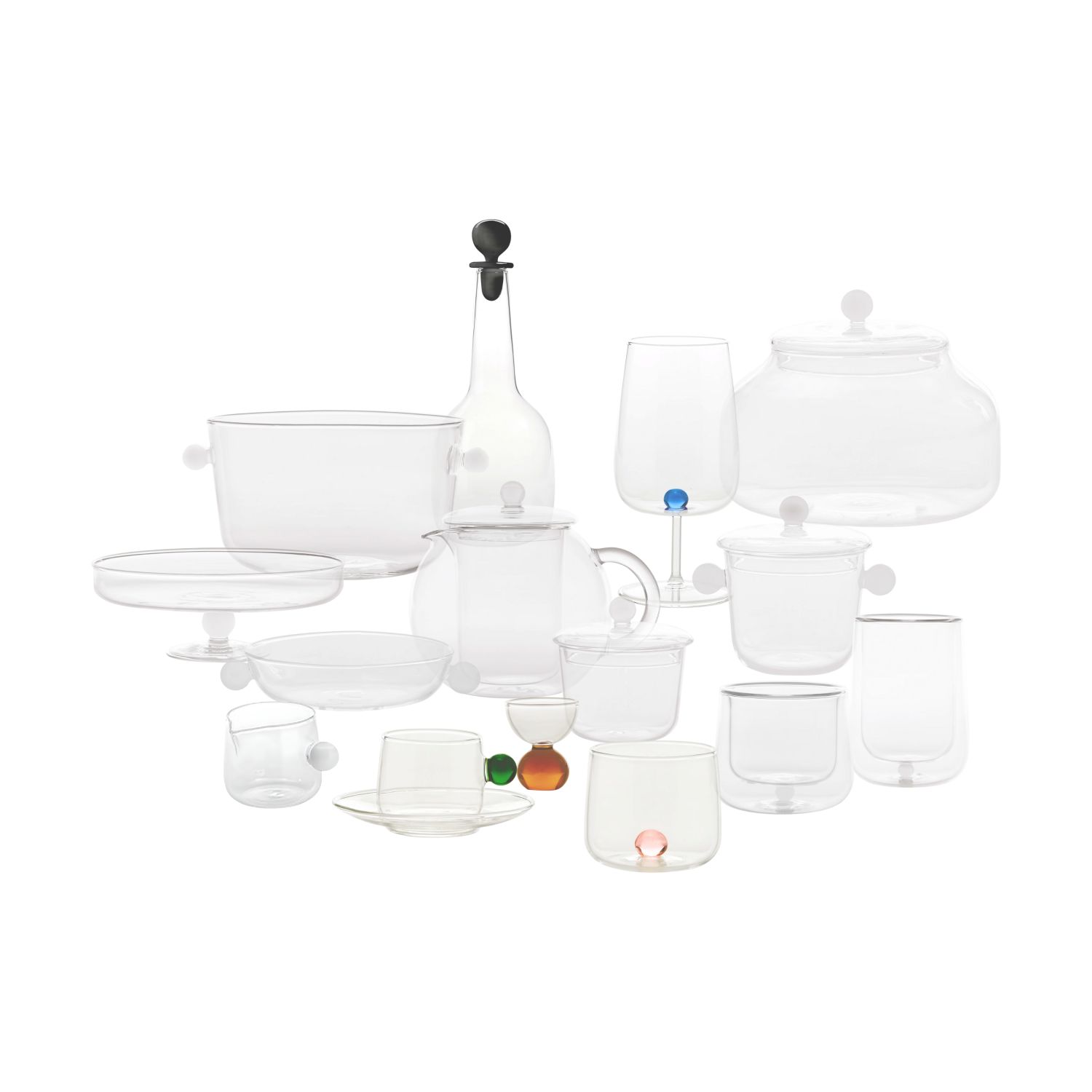 Bilia is a dive back into your brightest memories. The name alone brings you to those carefree summers as a child: warm sand under your feet, dazzling sunlight, laughter everywhere… and the simple joy of colorful glass marbles rolling through your hands. That same feeling returns in this Zafferano collection. Vibrant colors, playful shapes, and little glass spheres that seem to trap a spark of summer inside them. Bilia is a joyful, complete family: tumblers, mugs, espresso cups, bottles, egg holders, bowls, teapots, cake stands and more. Each piece is crafted by hand in borosilicate glass, light, durable, dishwasher and microwave safe. Choose your colors, create cheerful and ever-changing table settings, let every guest find their own marble and their own smile. With Bilia, every sip and every moment brings you back to the sweetest memories.