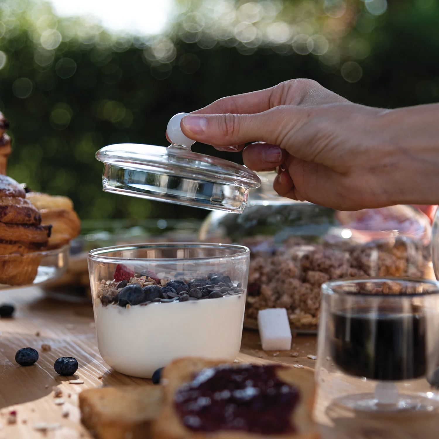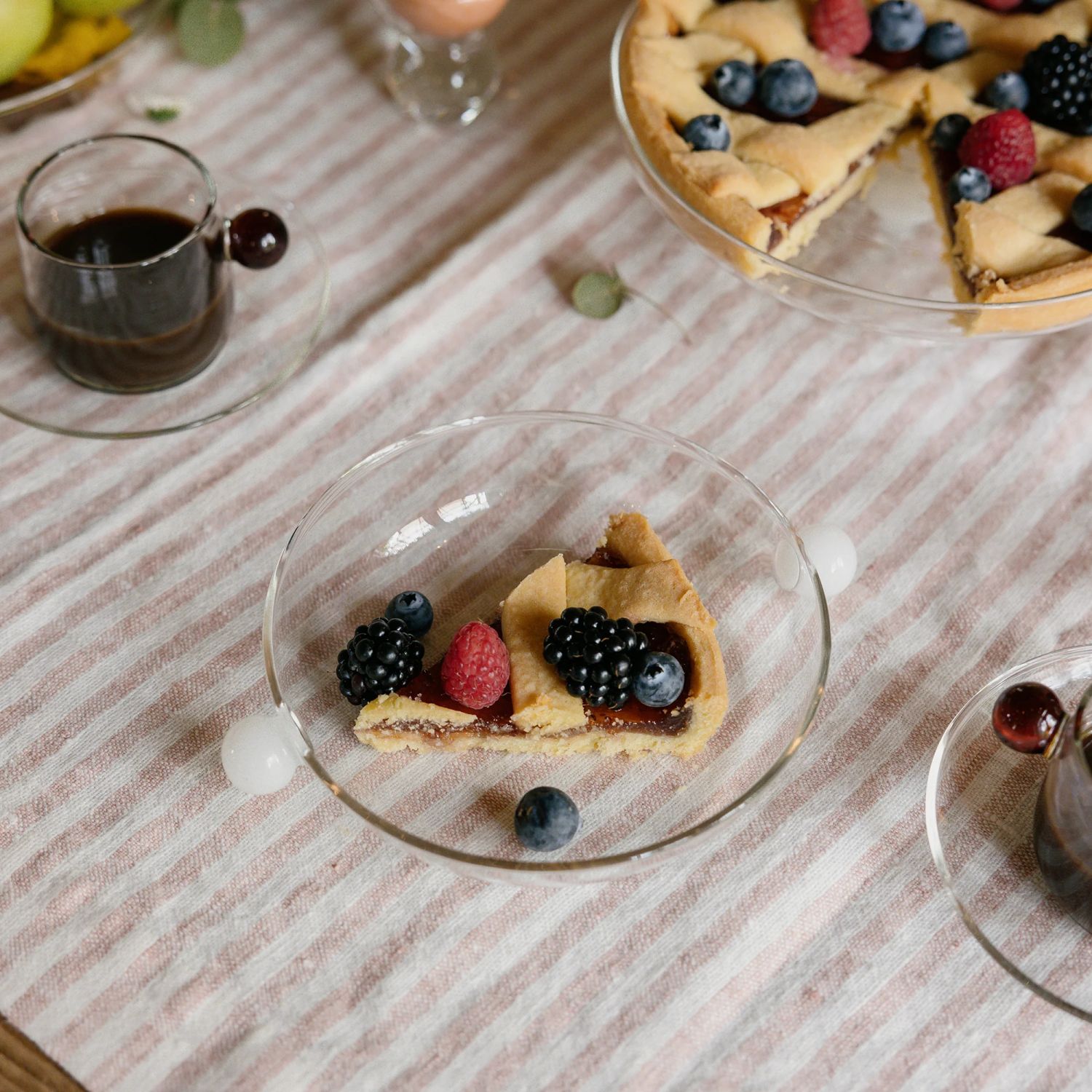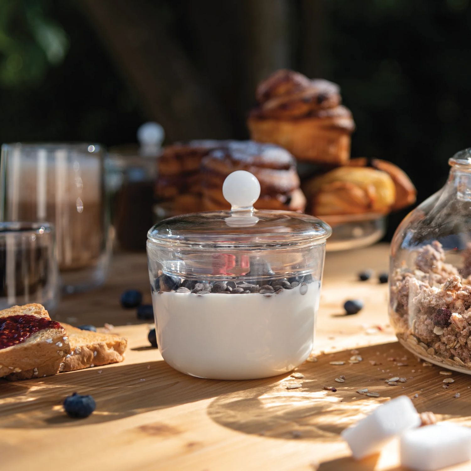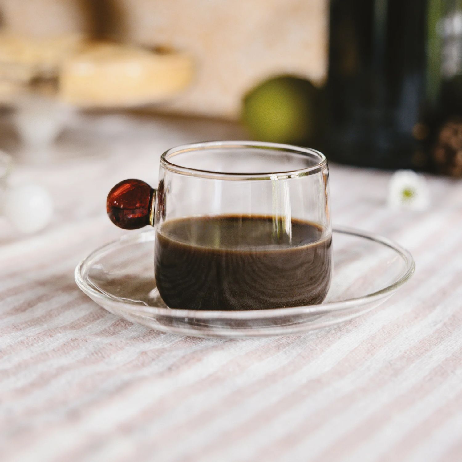 Bilia is a dive back into your brightest memories. The name alone brings you to those carefree summers as a child: warm sand under your feet, dazzling sunlight, laughter everywhere… and the simple joy of colorful glass marbles rolling through your hands. That same feeling returns in this Zafferano collection. Vibrant colors, playful shapes, and little glass spheres that seem to trap a spark of summer inside them. Bilia is a joyful, complete family: tumblers, mugs, espresso cups, bottles, egg holders, bowls, teapots, cake stands and more. Each piece is crafted by hand in borosilicate glass, light, durable, dishwasher and microwave safe. Choose your colors, create cheerful and ever-changing table settings, let every guest find their own marble and their own smile. With Bilia, every sip and every moment brings you back to the sweetest memories.