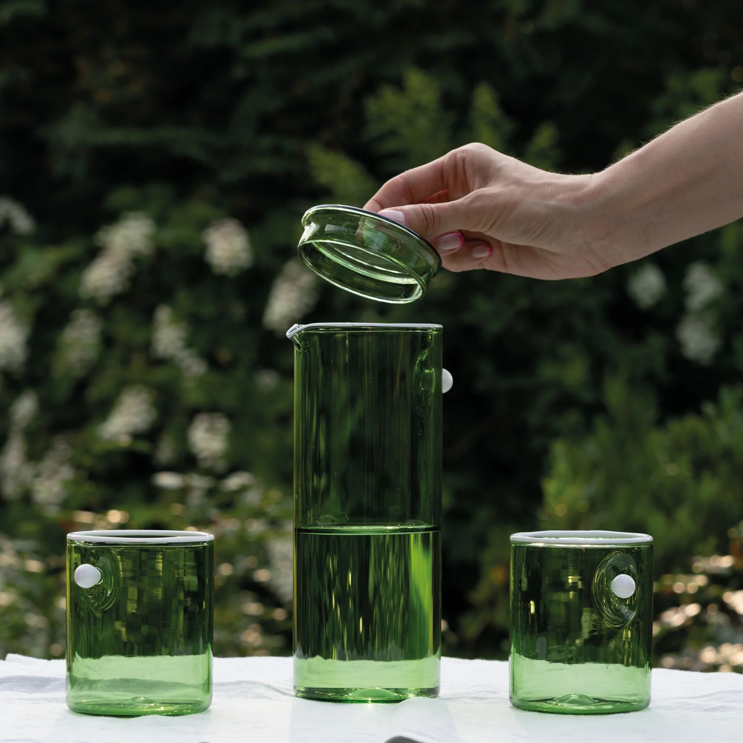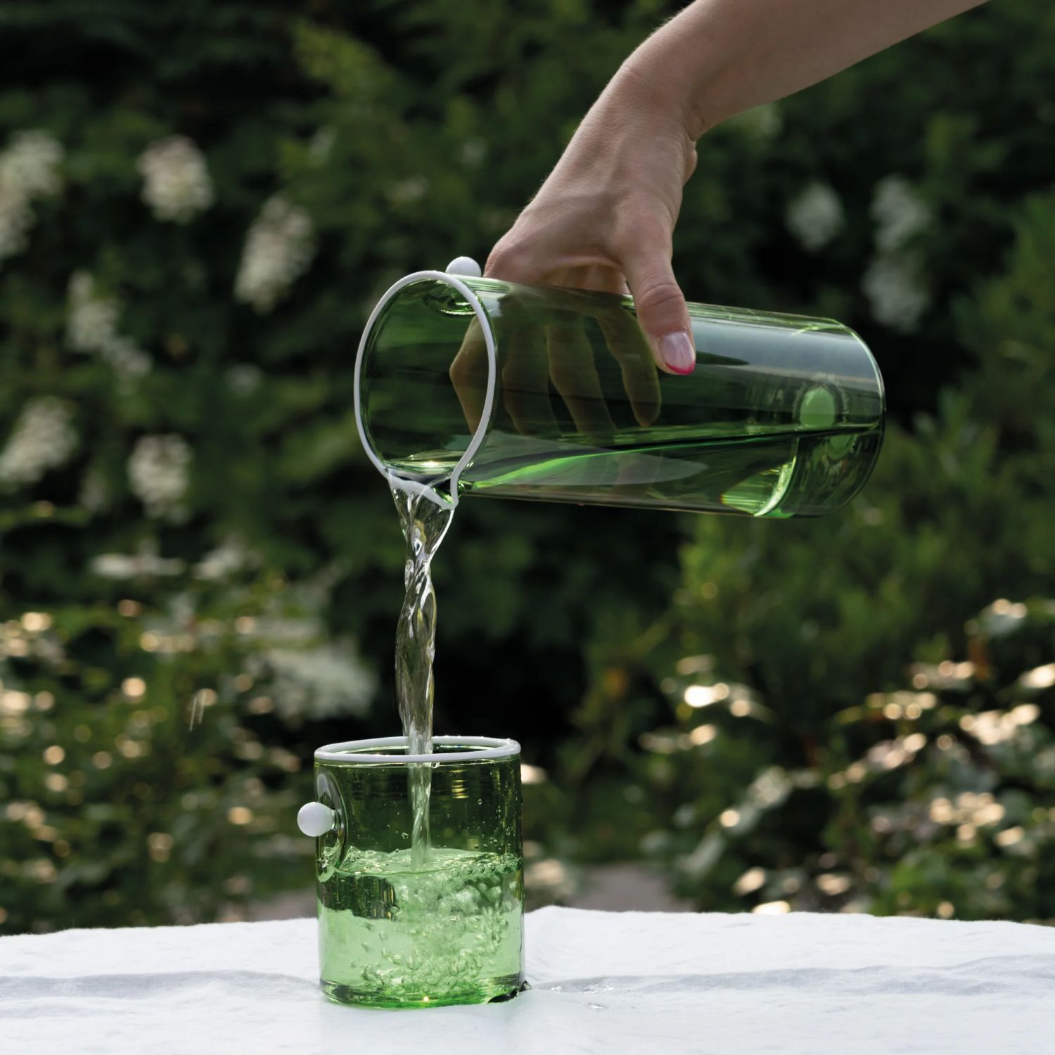 The Oyster collection by Zafferano brings elegance and refinement to every table moment. Highball glasses, carafes, and bowls share a simple, linear, and colored transparent design, enhanced by a small detail of character: a matte white glass pearl that seems to want to escape from the piece, remaining suspended, trapped by the surrounding glass, capturing the eye and creating a dynamic interplay between form and light. This distinctive element gives Oyster products a discreet touch of luxury, transforming every sip and every dish into a refined experience. The clean, modern lines harmonize with the delicate available shades, adding elegance and style to any occasion, from daily use to the most special dinners. Lightweight, durable, and handmade in blown borosilicate glass, Oyster products combine beauty, functionality, and uniqueness, making every table a small masterpiece signed Zafferano.