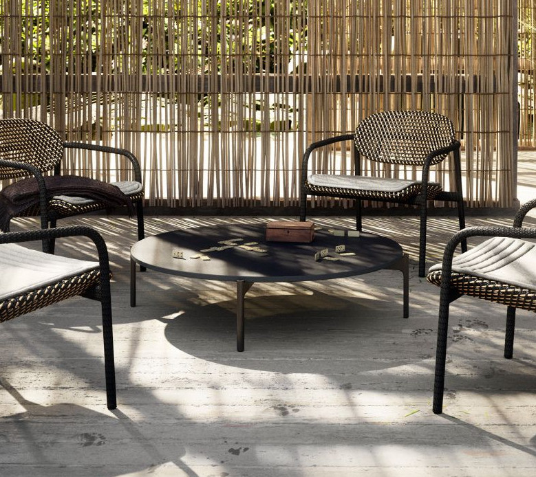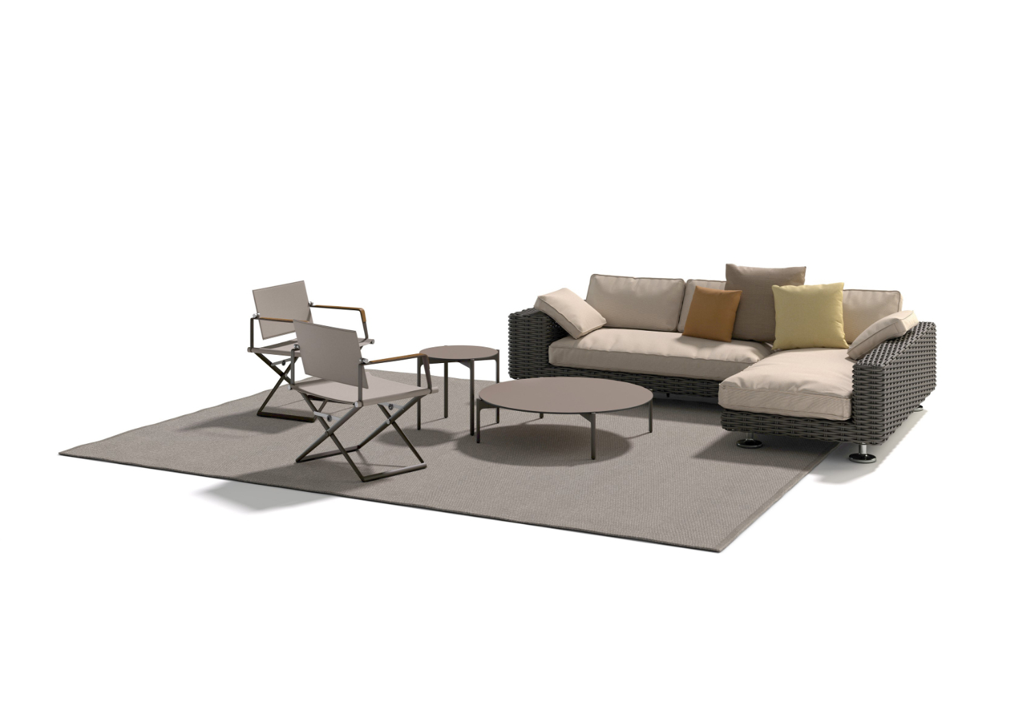 Modern outdoor coffee table Izon. How do we want the coffee table? Rectangular, square or circular, large or small, that can be combined in different ways or even be superimposed, Izon is like that, it lends itself to everything. Izon is the series of outdoor coffee tables in powder coated aluminium with a selection of materials and colours of great beauty, the finishes, details and outdoor treatments are of excellence and high quality. The Izon coffee table, its guarantee and signature is Dedon.