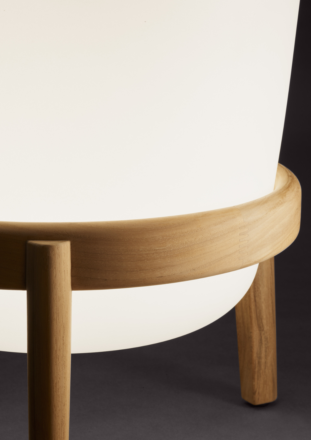 Modern - contemporary design, simple lines, warm LED light and rechargeable, this is Loon, the outdoor lamp by Dedon. Loon is a floor lamp in Loon L and Loon S versions, the base structure in teak wood and the bulb in rotomoulded polyethylene. Its ambience and elegance will appeal to everyone everywhere. Loon, the exterior of distinction.