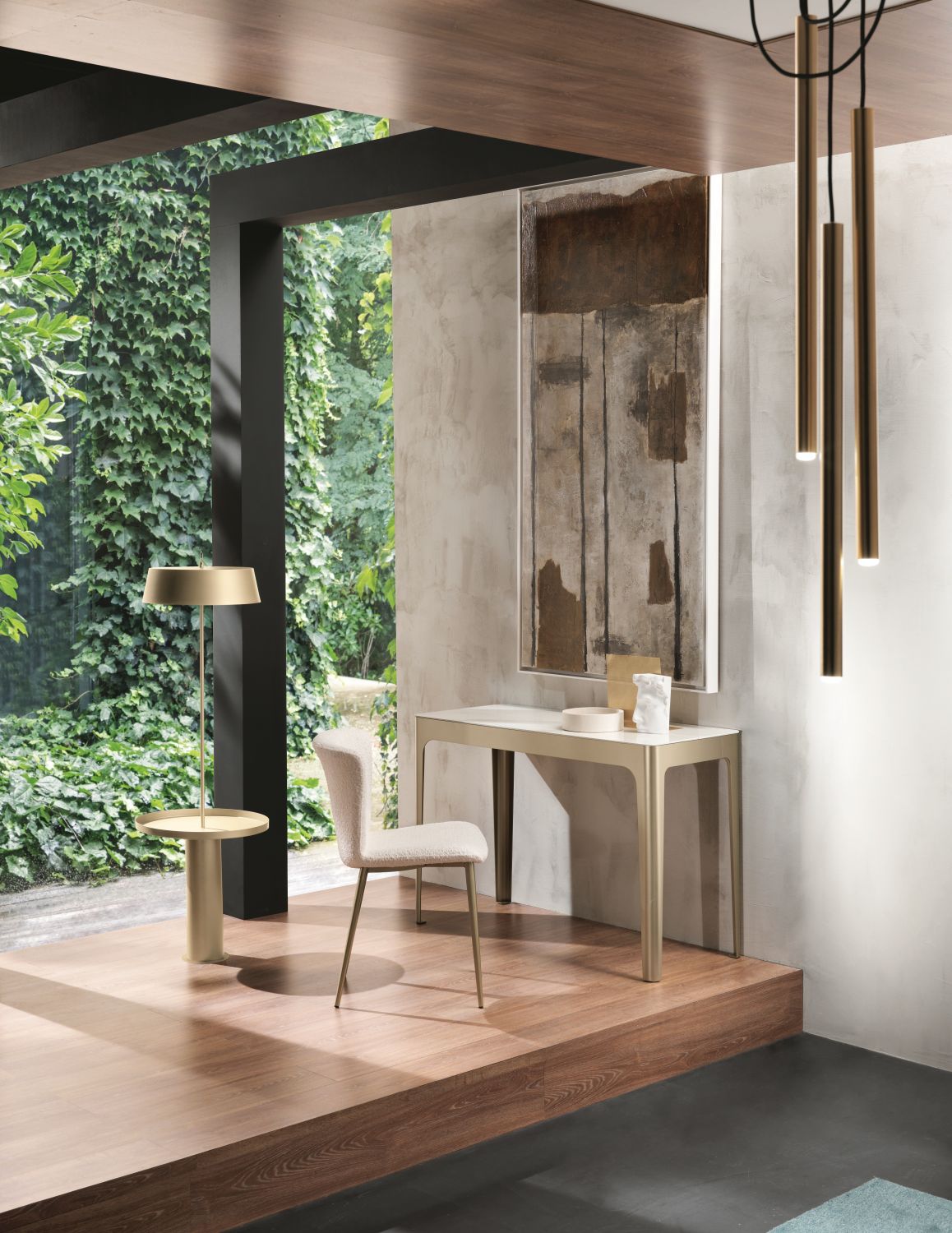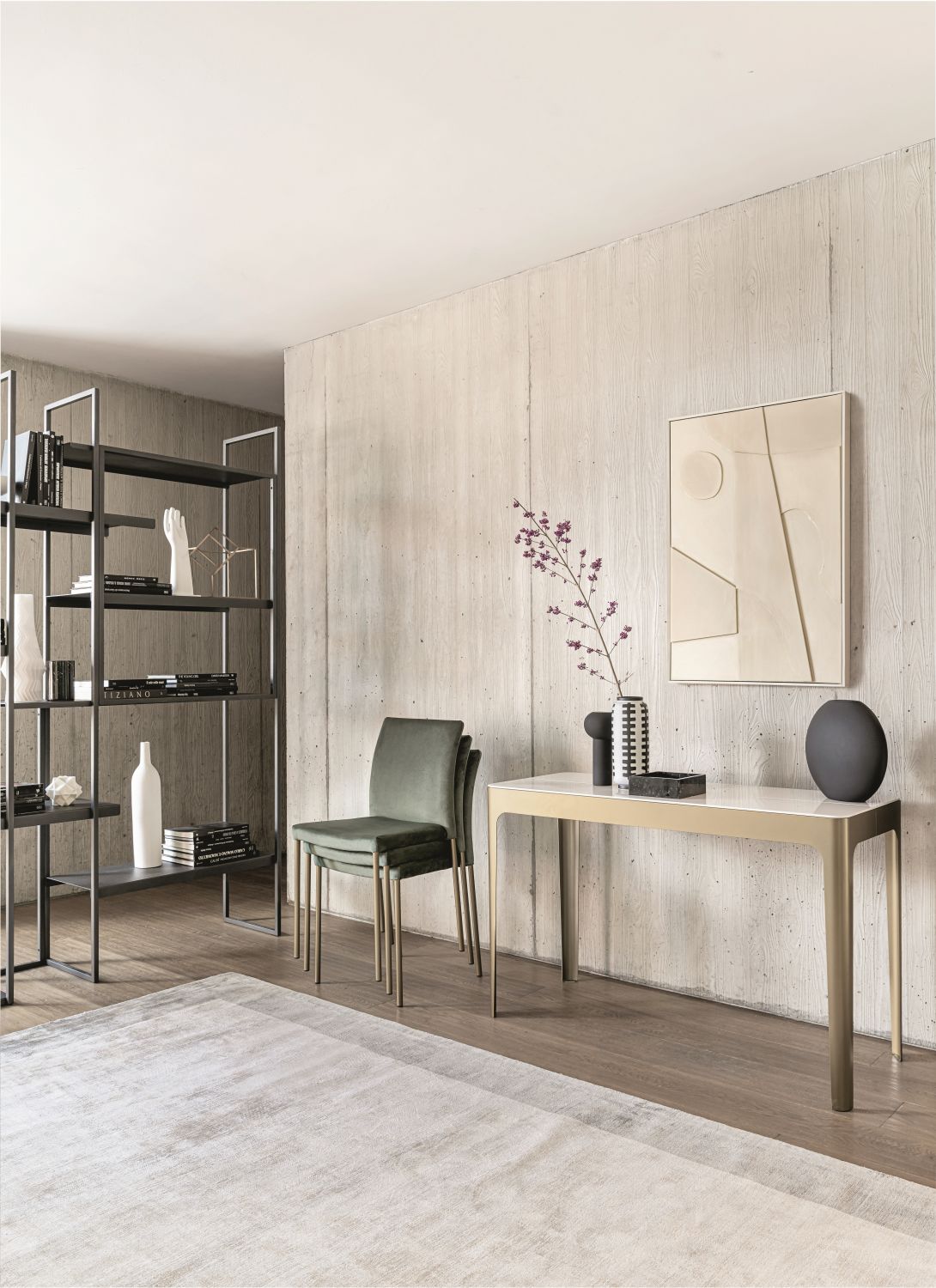Beyond its practical function, the Corner console becomes a true decorative element that enriches the space without overwhelming it. It can be used to display objects, plants, or accessories, blending harmoniously with its surroundings and helping to create a welcoming and curated atmosphere.
