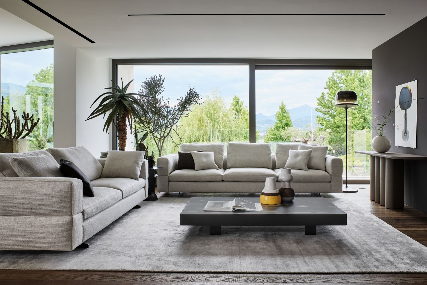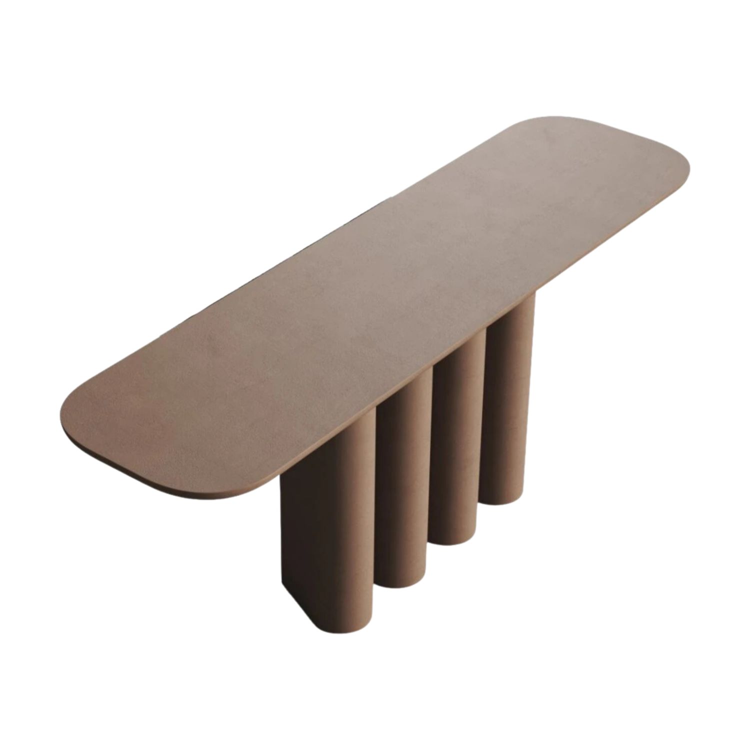 The monomaterial Geometric console is a refined exercise in balance and proportion. A thin, lightweight top appears almost suspended, supported by three clay columns that define the base like architectural elements. The choice of a single material for both structure and top creates a compact and harmonious effect, where shapes and volumes flow seamlessly together. Solid yet visually light, Geometric plays with the purity of form and the tactile character of clay, turning a console into a sculptural statement. Essential, bold, elegant, the monomaterial Geometric console is by Bonaldo.