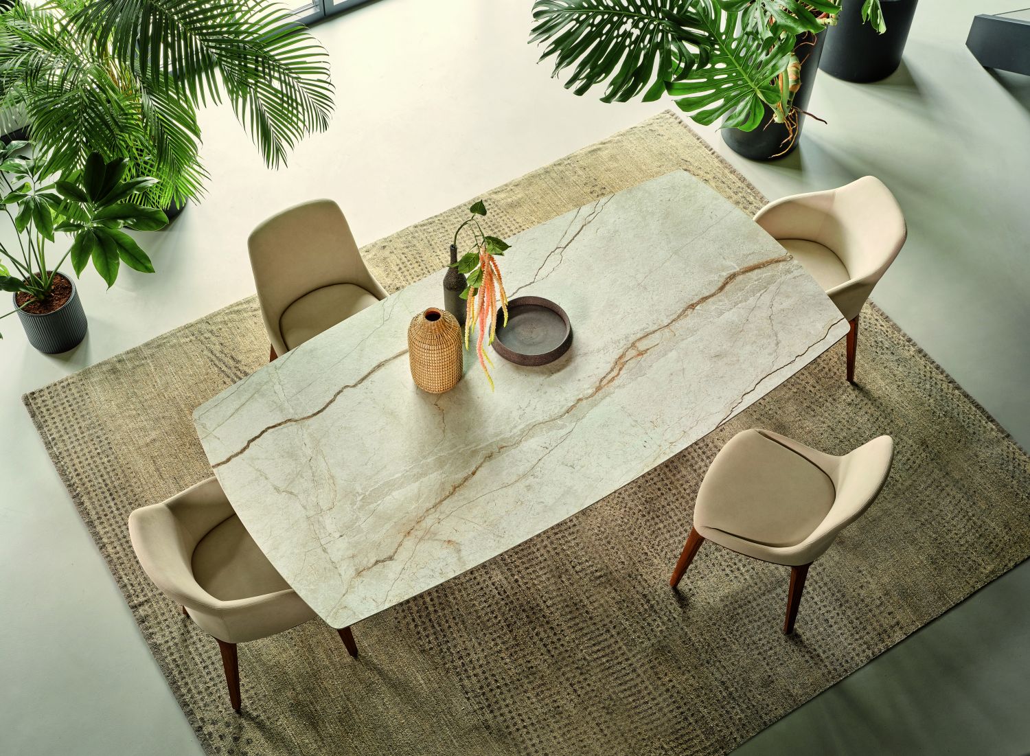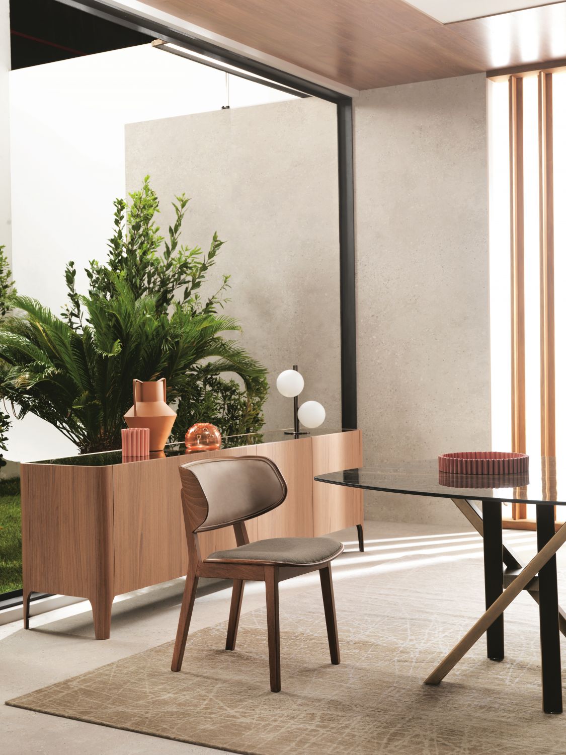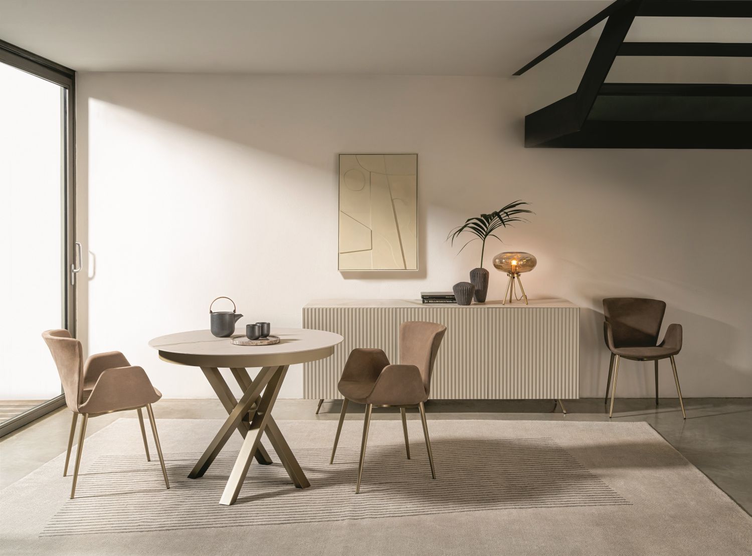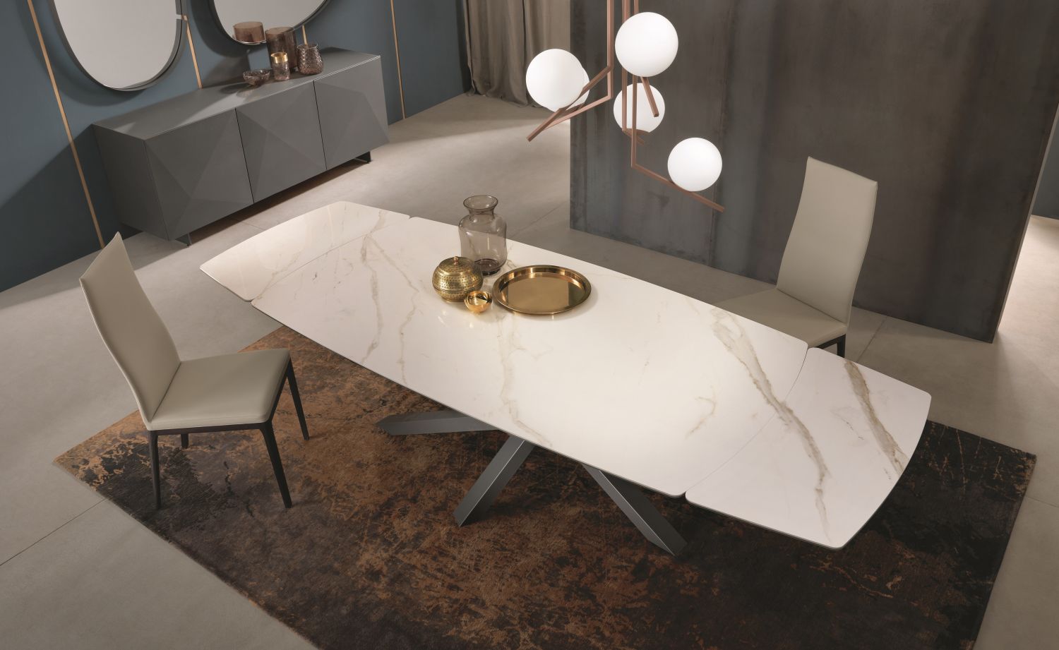 Shangai combines aesthetics and functionality: its wide, uniform surface comfortably accommodates dishes, decorative objects, and accessories, making it ideal for family dinners, social gatherings, or special occasions. Every detail is designed to convey modernity, balance, and refinement, enhancing the room with a bold and contemporary style.