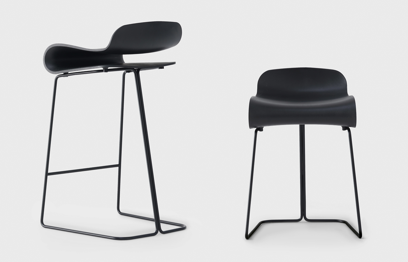 El asiento del taburete de hecho se caracteriza por una sinuosa y ergonómica forma que ha exigido a la compañía un esfuerzo notable durante el desarrollo de producto.