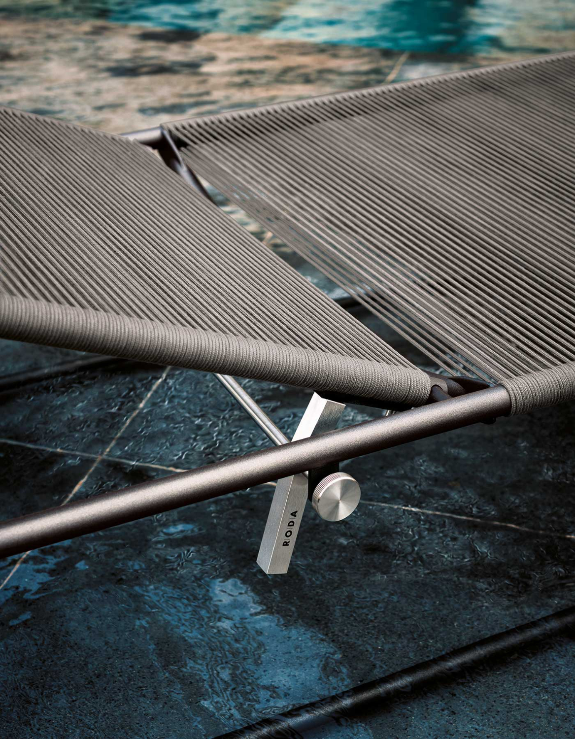 Harp, una tumbona que siempre atrae a todo el mundo. Su diseño moderno llama la atención, la estructura sin bordes es de acero con asiento de doble cuerda y colchoneta estándar o hidrodrenante, el respaldo es reclinable. Perfecta al aire libre, la tumbona de exterior Harp lo tiene todo para decorar terrazas, jardines y bordes de piscina. Harp tiene la elegancia intemporal del refinamiento de alta gama, la artesanía y la garantía de excelencia, la firma de Roda, el gran Made in Italy.