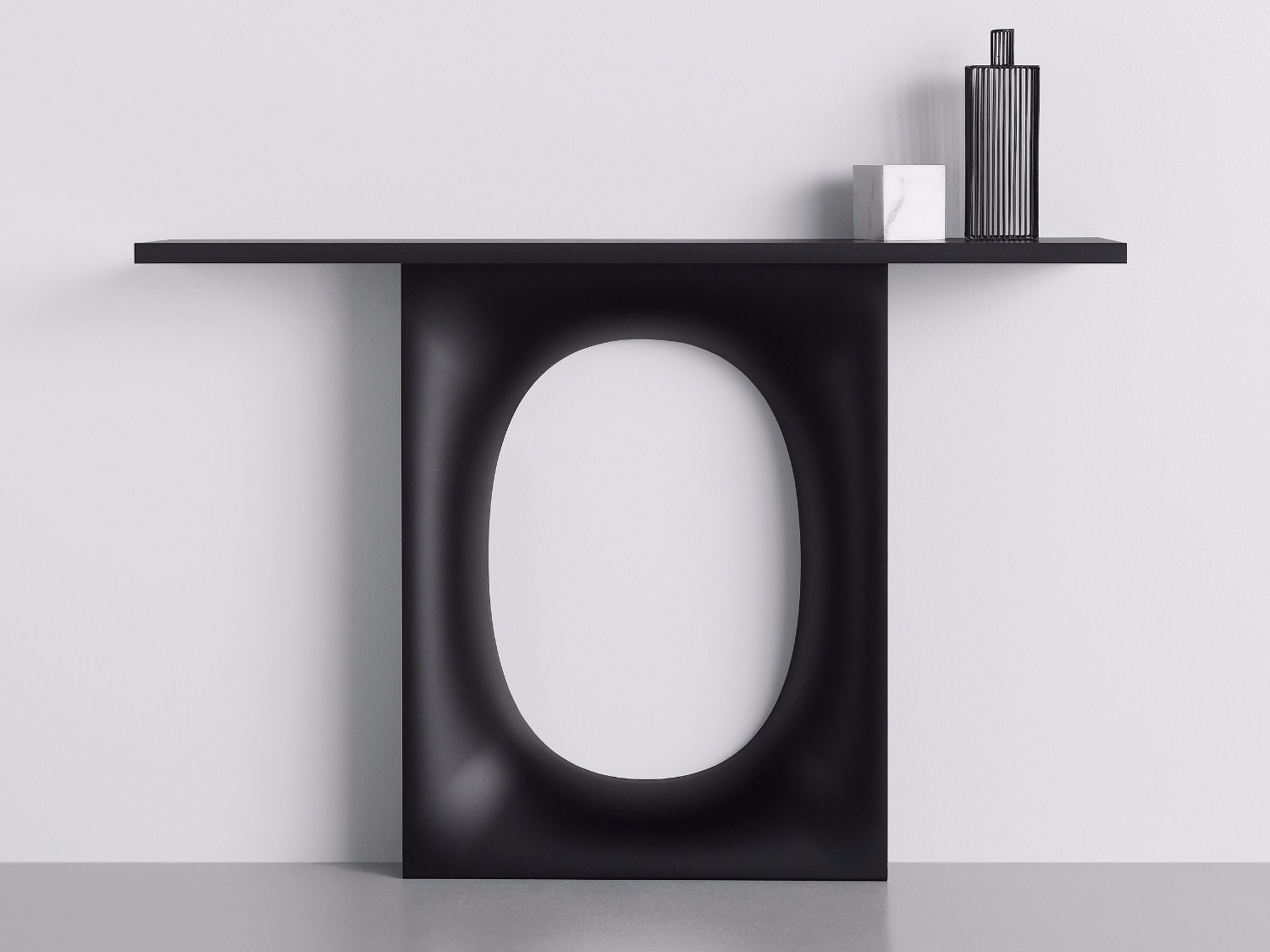 Desde el encuentro entre tecnología de Kristalia y la creatividad de Kensaku Oshiro sale Holo: una consola caracterizada por la base nueva con un agujero oval, del contorno moldeado con dulzura, realizado en lamina de acero con un proceso que prevee muchos pasajes de impresión y doblado. Sobre esta base original está apoyado un plan en Fenix-NTM® con efecto opaco antireflejo que dona a la superficie de este material una estética caliente y suave al tacto.