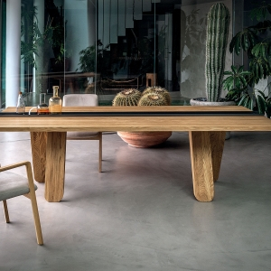 Desde el bosquejo de la diseñadora Patricia Urquiola, la mesa Canal se presenta con una pequeña cuanto original convive : el plano tiene un compartimiento central de hierro con funcion contenitiva. Preciosa tambièn còmo materiales utilizdos que còmo procesamientos, Canal es la mesa rectangular fija con cuatro piernas a secciòn geometrìca y plano a listas pegadas y lados cuadrados. El diseño de la mesa Canal es moderno con una lìnea que es un mix de innovaciòn y tradiciòn.Canal, el complimento que mueblqa la area living con estilo proprio e inequìvoco : firma Riva.