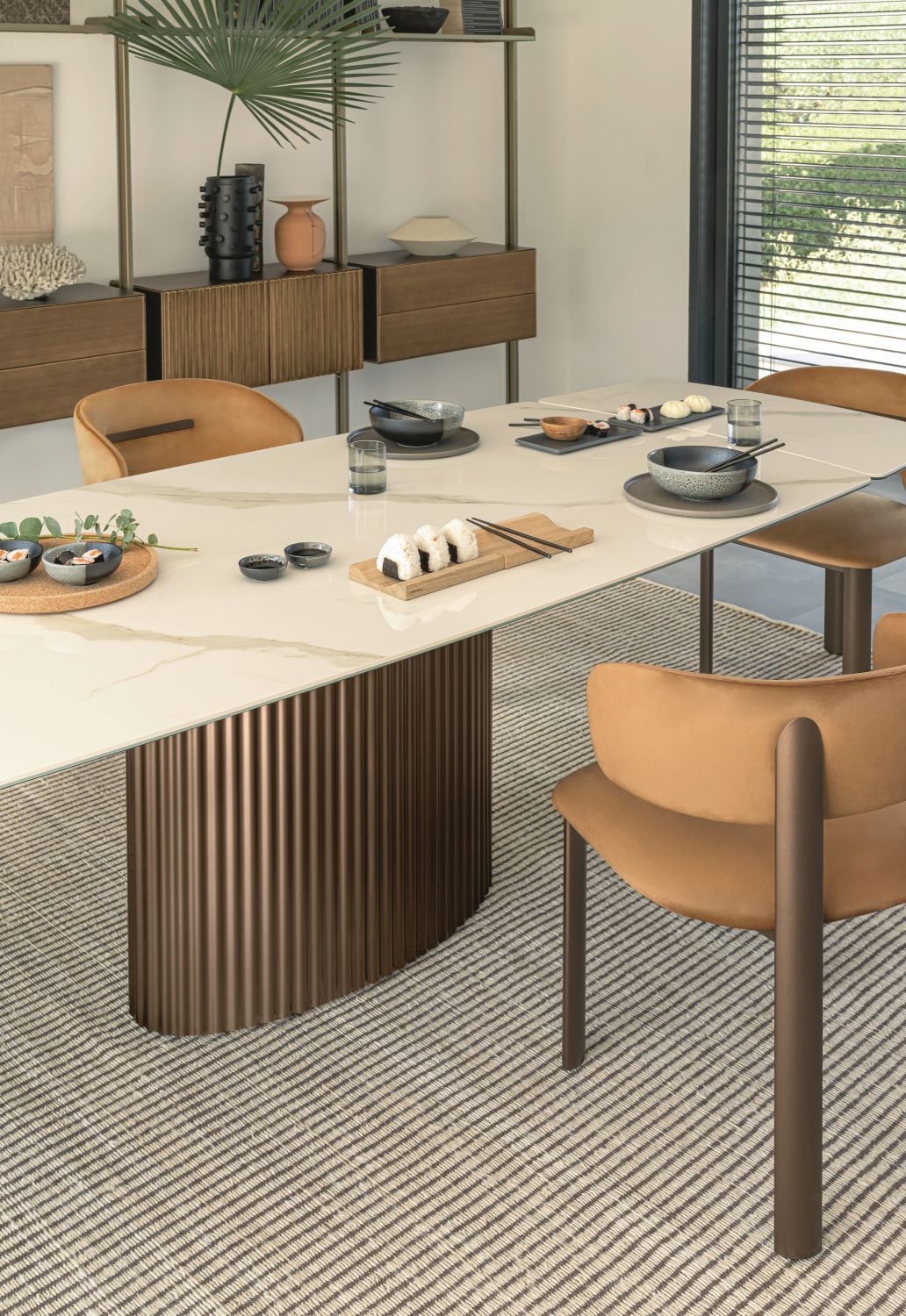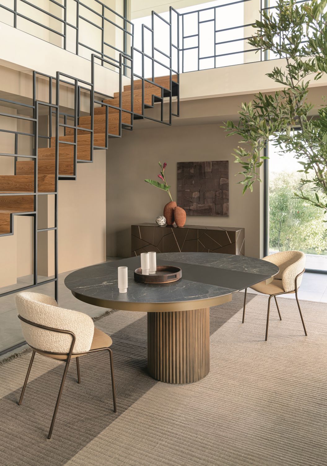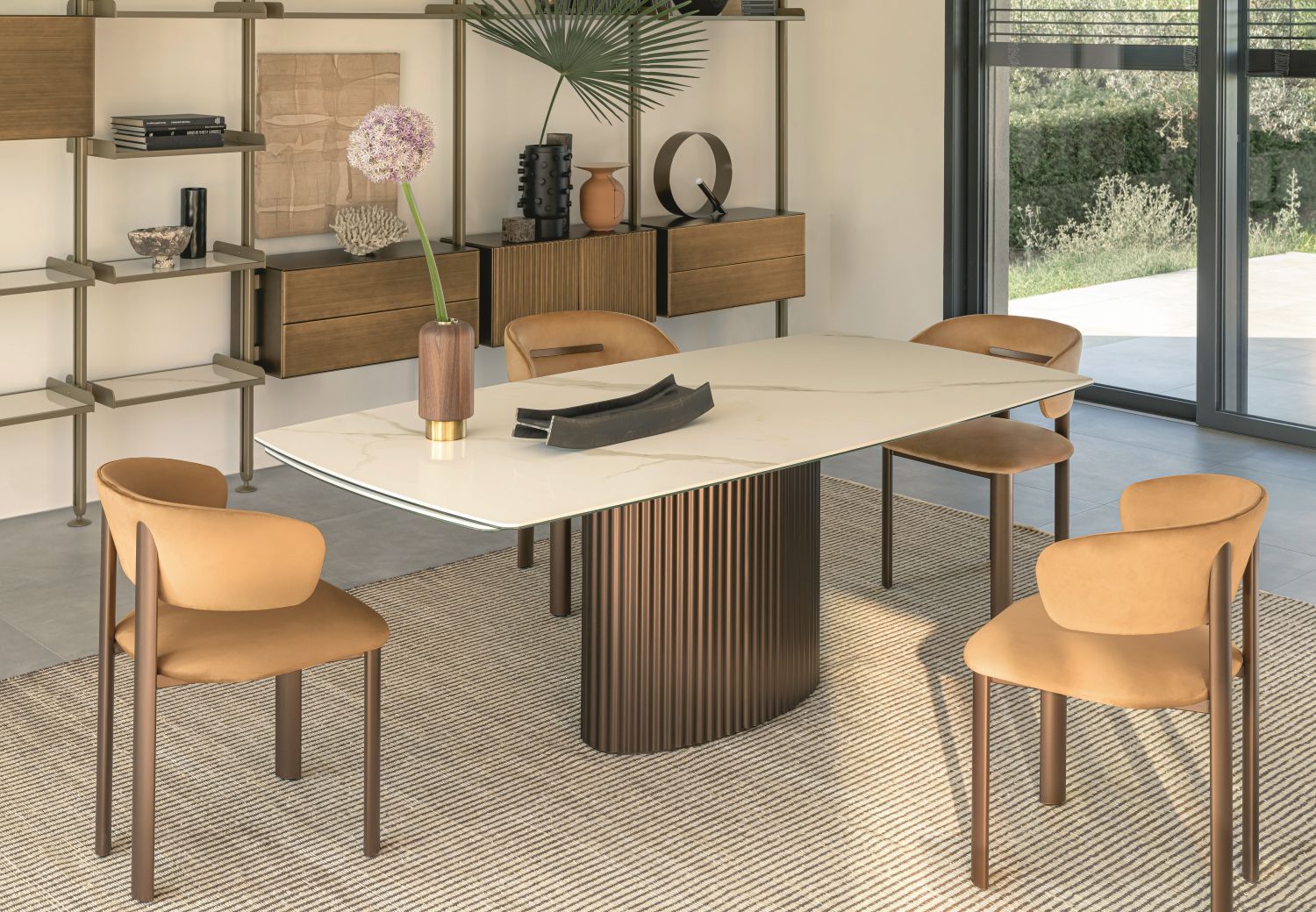 Enea combina estética y funcionalidad: su amplia y regular superficie proporciona espacio suficiente para objetos decorativos, vajilla y accesorios, integrándose perfectamente en diferentes estilos de interior, desde un minimalismo esencial hasta entornos más sofisticados. Cada detalle está pensado para transmitir ligereza, refinamiento y modernidad, realzando los espacios sin sobrecargarlos.
