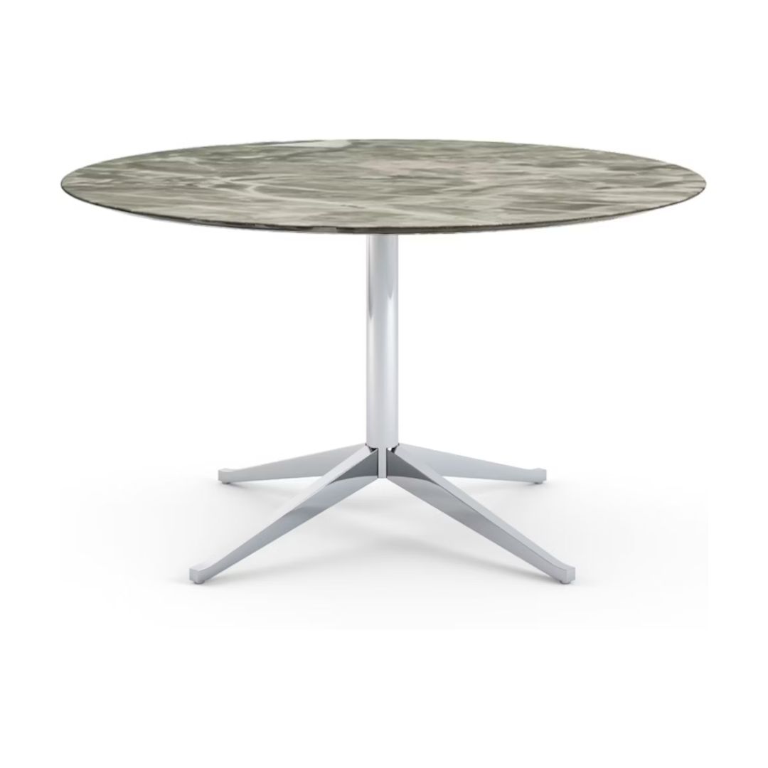 La base de cromo so brillante atinado, el plano de madera o de maròl natural en una amplia gama de colores y acabados,aquì es Florence Knoll. Florence Knoll es una mesa ovalada o redonda muy delgada y elegante; el diseño minimalista es precision y hermosura,la mesita Florence Knoll es sencillez y dinamicidad. By Knoll.