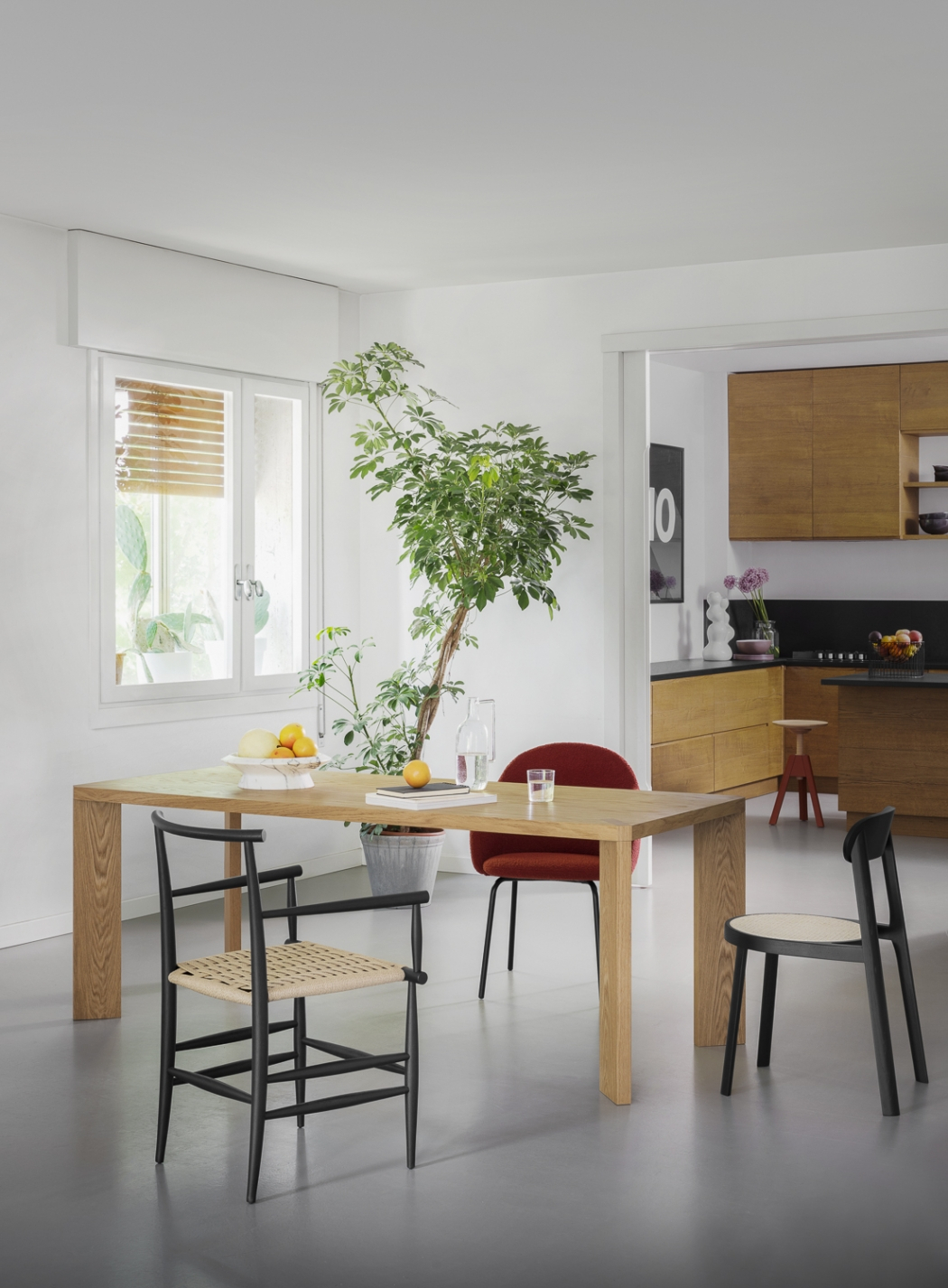 Manero es una mesa de lineas simples y casi primitivo cuya particularidad esta en un refinado juego de uniones. La mesa se puede hacer en madera de roble viejo lo que contribuye a crear un espacio nuevo pero con un fuerte reclamo a la tradición de la verdadera carpinteria.