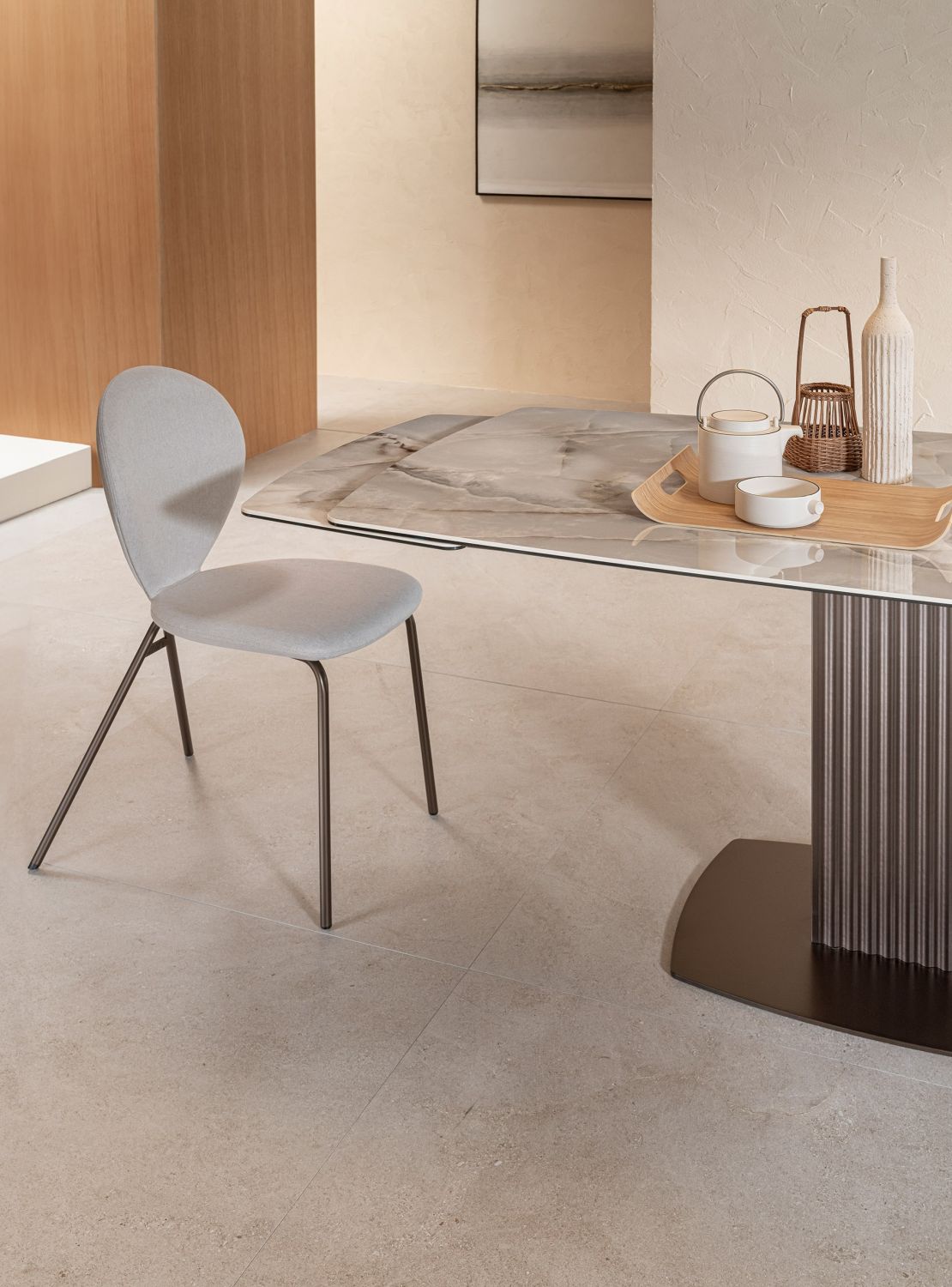 La mesa Onda de Riflessi es un mueble elegante y moderno, diseñado para realzar cualquier comedor con estilo y personalidad. Su diseño fluido y armonioso evoca el movimiento del agua, creando ligereza visual y un carácter distintivo que convierte a Onda en un punto focal sin sobrecargar el espacio.
