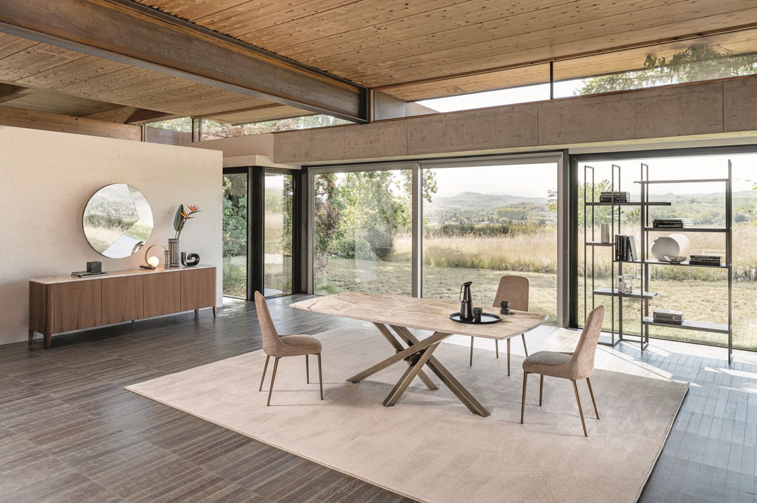 Perfecta para interiores modernos, minimalistas o de diseño cuidado, Shangai Riflessi es ideal para quienes buscan una mesa elegante y versátil que se integre armoniosamente con otros muebles. Un mueble que combina estética, confort y funcionalidad con una fuerte presencia visual.