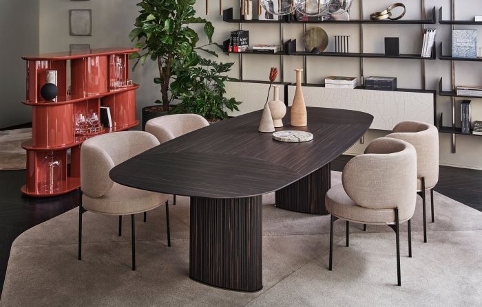 Shiro es la Mesa fija, es la Mesa de actor que amuebla lo moderno/contemporaneo con un encanto elegante y refinado. Shiro tiene la base con dos pies ovalado y saburral en madera con detalles de metal cromado, el plano, ovalado orectangular, incrustado en madera ebano capri o tambien en marmol brillante natural a elecciòn entre varias propuestas. Excelente materil, laboraciòn de alta profesionalidad y buenos acabados, a todos el placer de poderlo difrutar. Shiro es el mueble sencillo ‘inmortal’. Shiro lo firma Gallotti y Radice.
