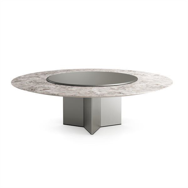 La versión Yol Sect ofrece un sobre dividido en cuatro secciones, disponible en mármol o madera, con un elemento giratorio central de cristal y la misma base revestida.