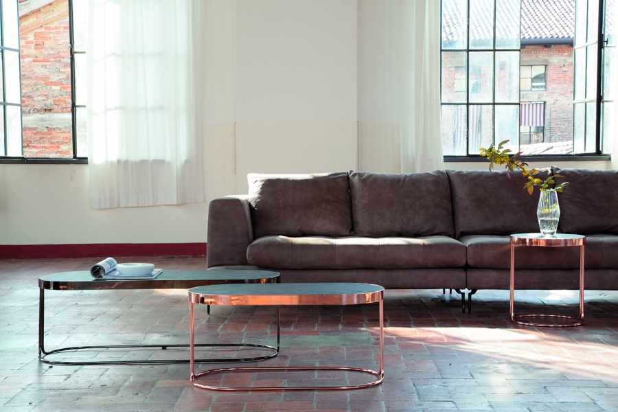 Estructuras cromadas de oro y pequeños planos de vidrio se funden en un juego de formas de las más variadas dimensiones para dar elegancia y dinamicidad a la sala.