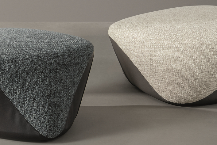 Seki, el puf. Este mueble tiene un diseño moderno y delicado. Su elegante línea es contemporánea a la vez que clásica con una tradición atemporal. Seki es un puf totalmente tapizado con una visible curvatura decorativa que le permite jugar con los matices y las gamas de color. Además, su forma irregular acentúa ese toque original y único que hace que sea amado por todos. Seki, el puf de la colección Bonaldo, la calidad Made in Italy.