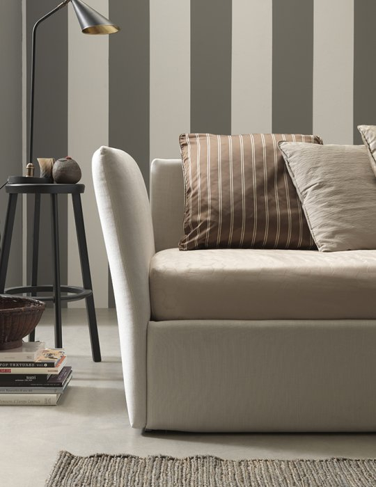 Un sofà, una cama : es Biba el complimento transformable de la colecciòn presentada por la marca Bolzan. El respaldo y los apoyabrazos estàn hechos para ser perfectos còmo cabecera y bancada, con combinaciònes a elecciòn entre varias propuestas. Cajònes extra’bles, contenedor, cama extraìble con o sìn mecanismo automatico o con solo apertura lateral, Biba el sofà suave, original y comodo, firma y garantìa Bolzan.