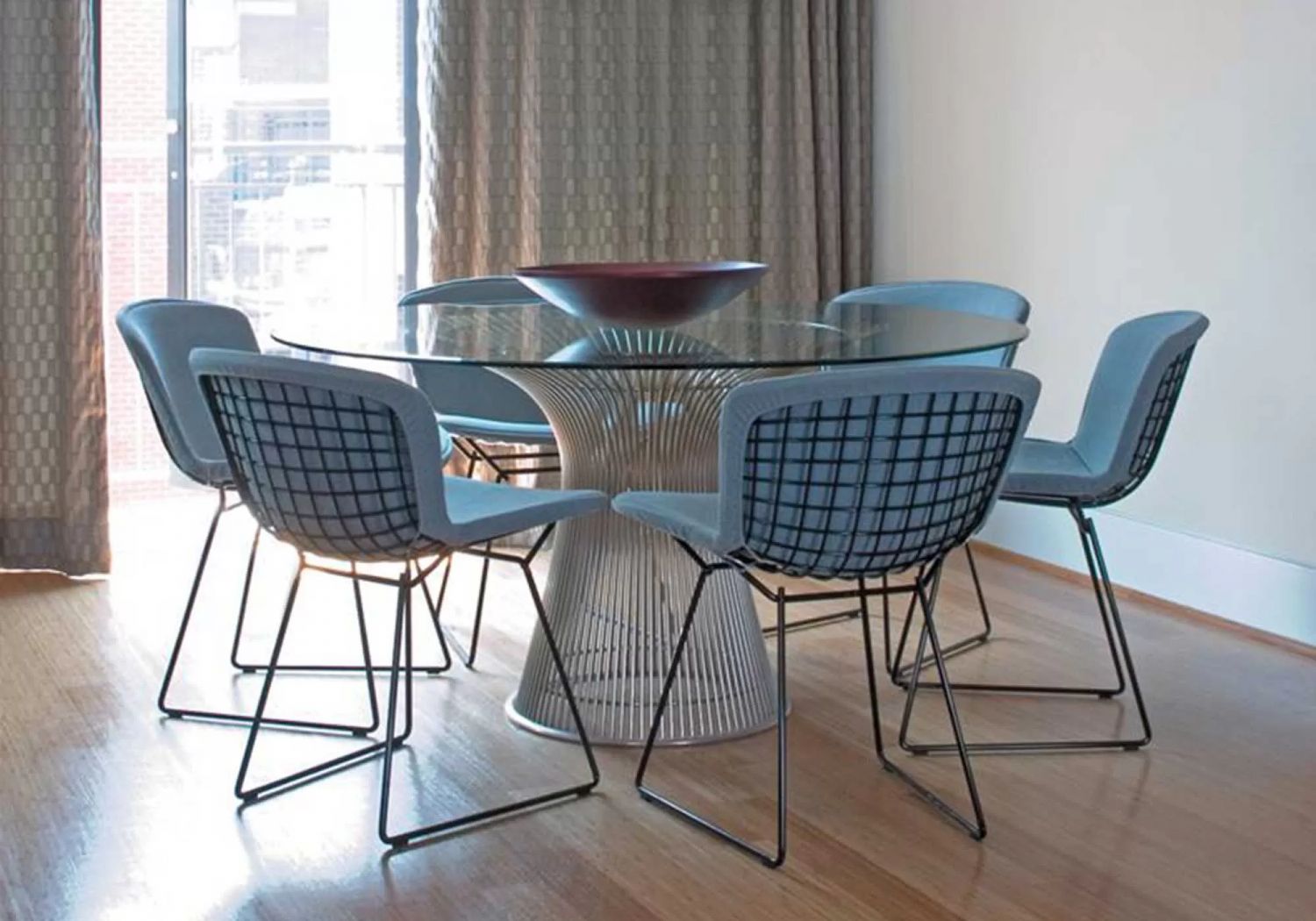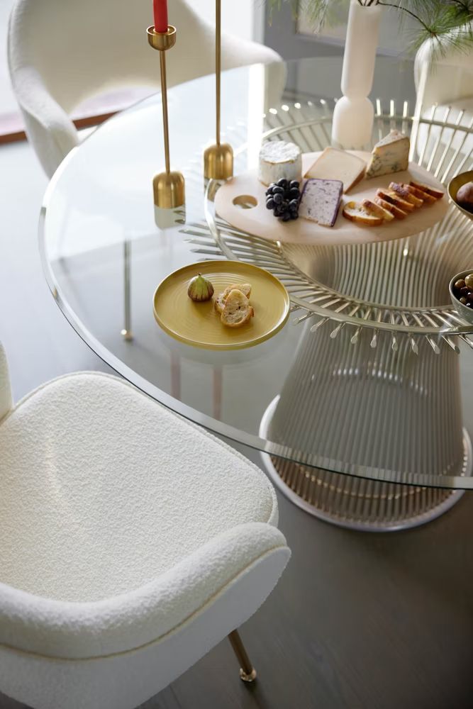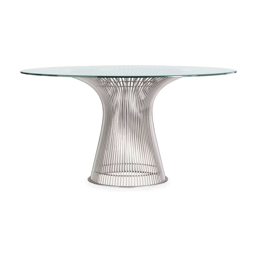 La mesa Platner de Knoll es un icono del diseño moderno, reconocida por su estructura escultórica y ligera. La base de níquel crea un efecto elegante y sofisticado, mientras que el sobre de cristal transparente enfatiza la ligereza visual y permite que el diseño destaque sin sobrecargar el espacio.
