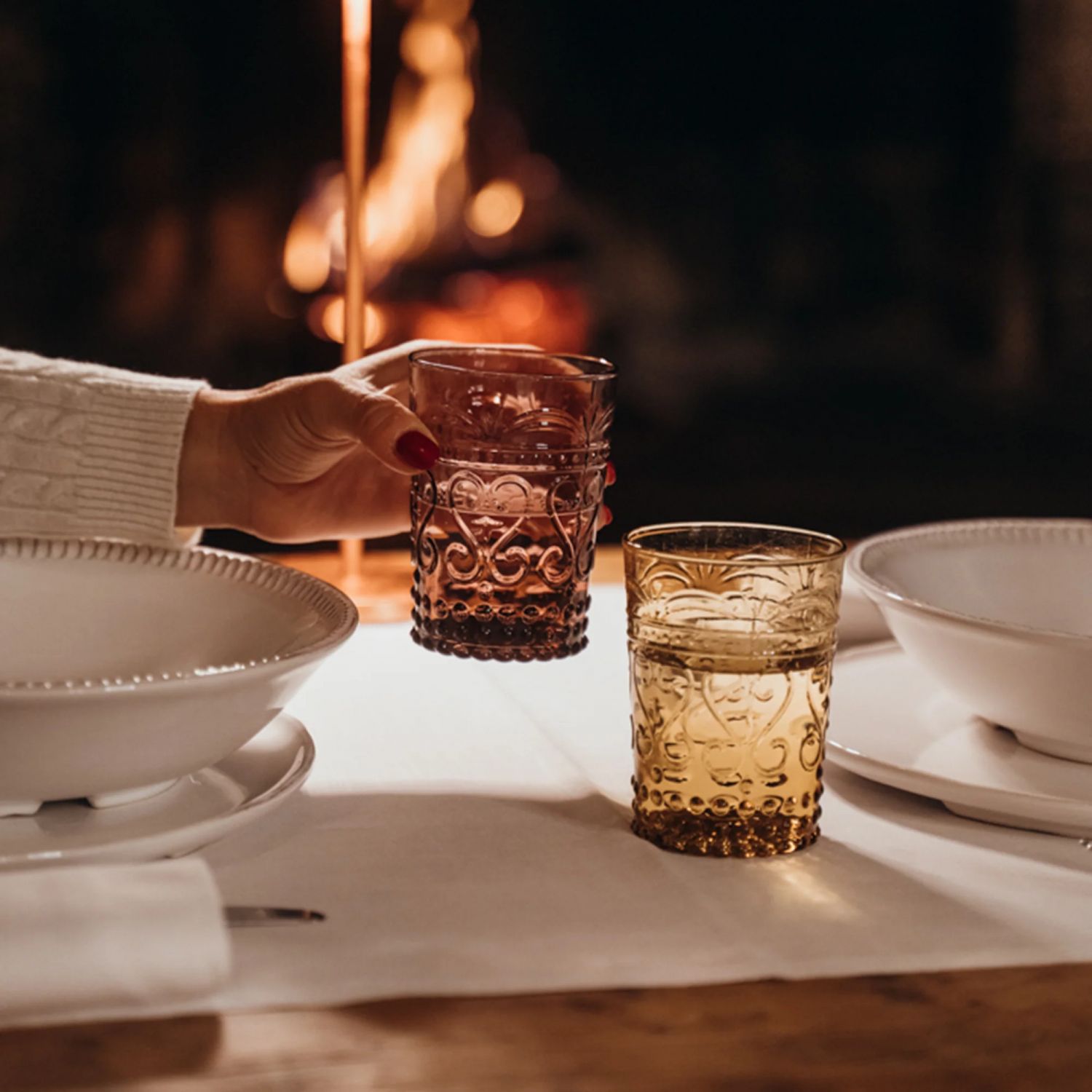 Los vasos Provenzale de la colección de Zafferano llevan el encanto del sur de Francia a tu hogar. Con delicadas decoraciones en relieve y disponibles en ocho colores vivos o en sets surtidos, estos vasos de vidrio coloreado en masa combinan belleza y resistencia. Soplados y trabajados a mano, son aptos para lavavajillas y perfectos para el uso diario. Añade un toque de elegancia rústica a tu mesa y vive cada día la magia de la Provenza con estilo y sofisticación. Una pequeña obra maestra firmada por Zafferano.