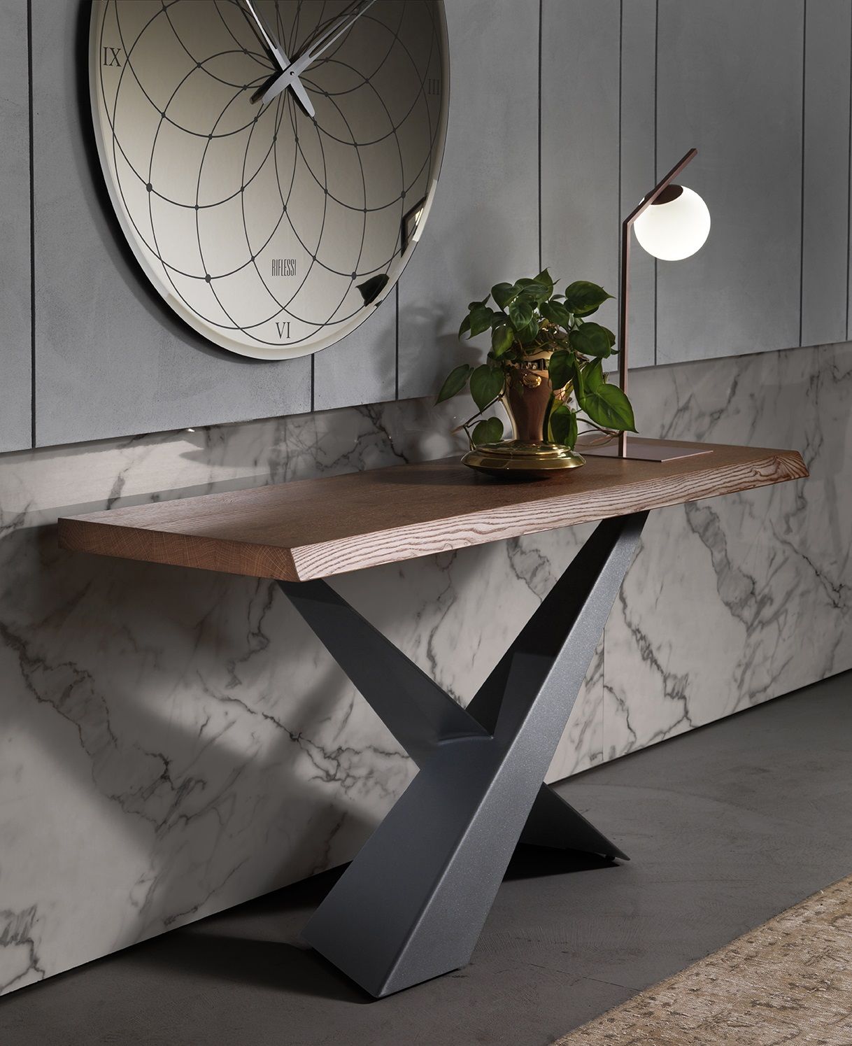 El reloj Roma de Riflessi es un complemento decorativo que expresa equilibrio, sobriedad y fuerza visual. Su diseño esencial está pensado para dialogar con la arquitectura del espacio, convirtiendo la pared en un punto de referencia armonioso y bien definido. Roma interpreta el tiempo con un estilo firme pero contenido, ideal para interiores contemporáneos.