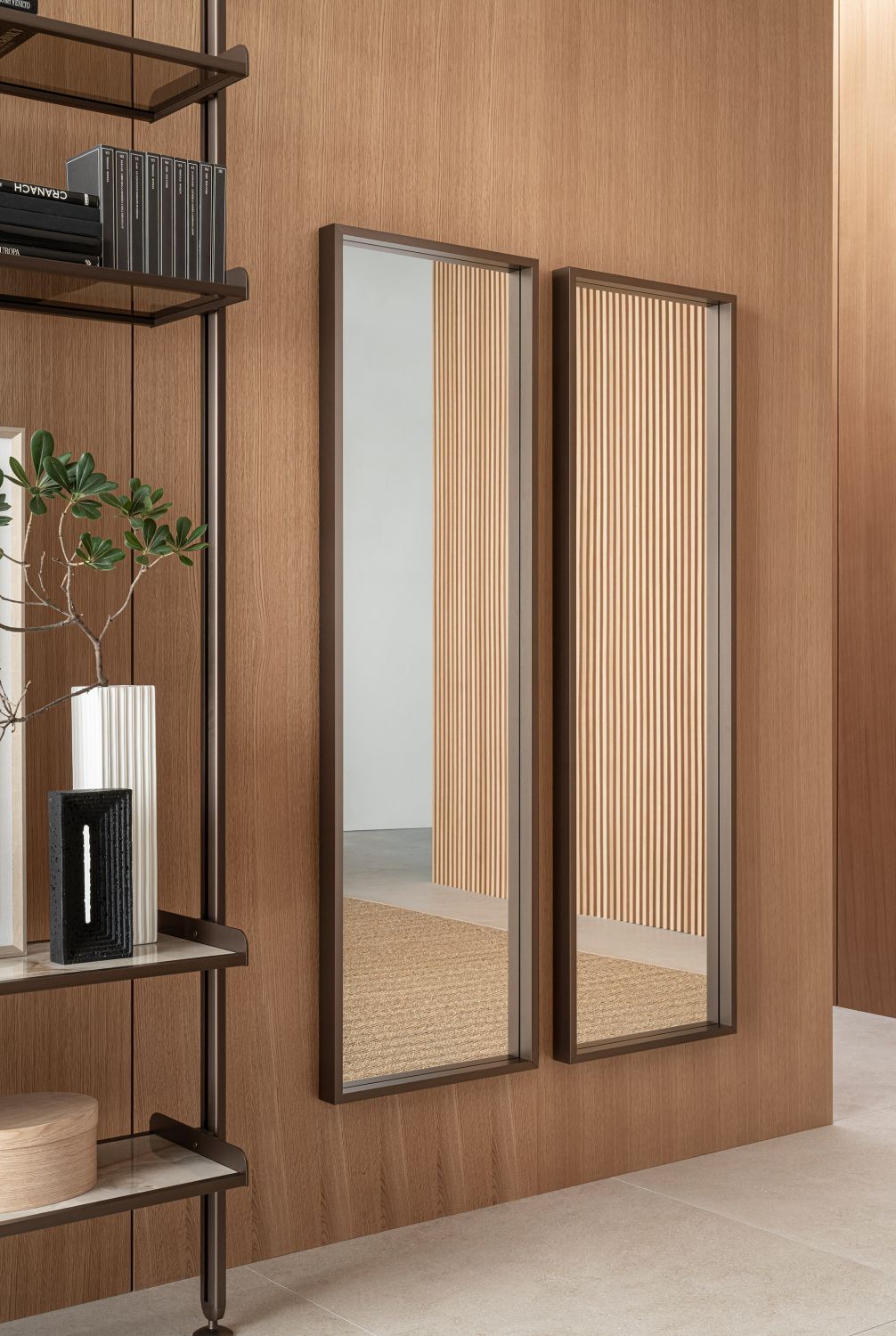 Más allá de su función reflectante, Altea mejora la luz natural y artificial, contribuyendo a iluminar los espacios y a ampliar visualmente las habitaciones. Su orientación vertical acentúa la altura de las paredes, creando una dinámica de proporciones ideal para pasillos o encima de mesas consolas. Este espejo no solo es funcional, sino también un elemento de diseño que eleva la vida diaria.