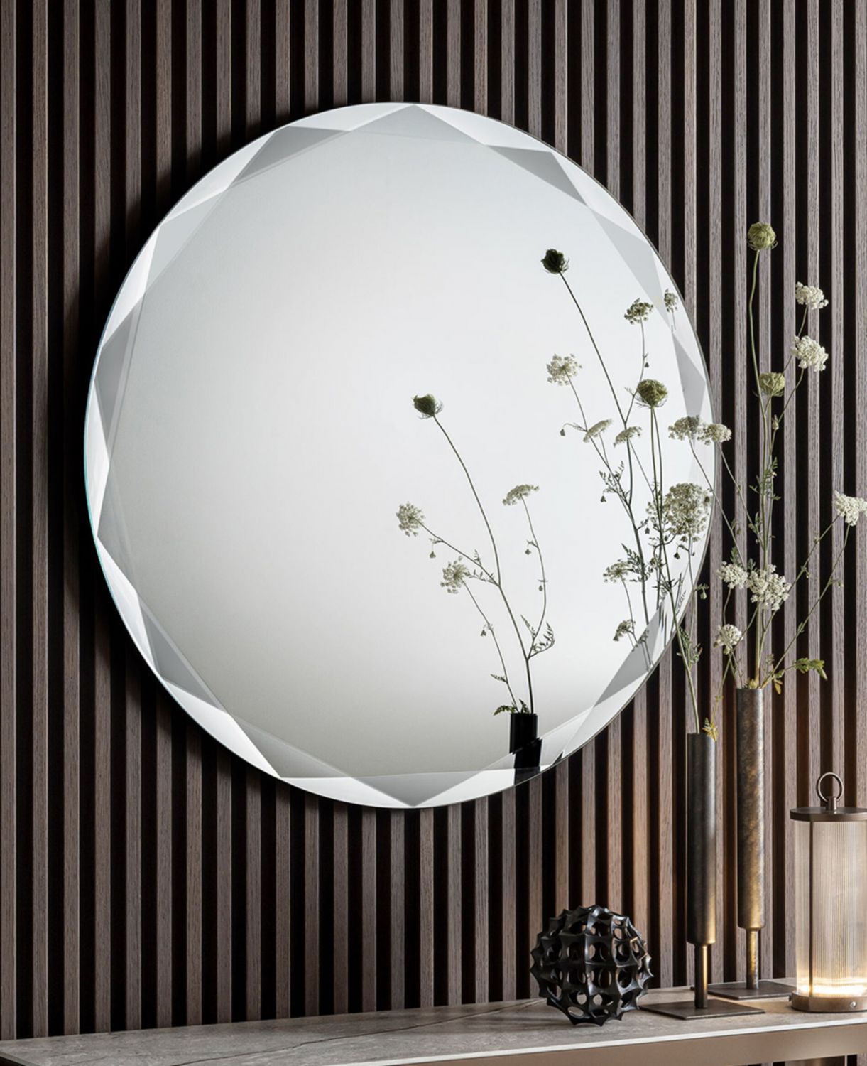 Perfecto para salones, recibidores o dormitorios, Gioiello aporta una presencia refinada a los interiores. Su diseño minimalista pero impactante y el cristal extraclaro de alta calidad crean una atmósfera acogedora y sofisticada, intensificando la luz natural y dando una sensación de amplitud y luminosidad. Este espejo combina funcionalidad y estética con armonía, integrándose con elegancia en decoraciones contemporáneas y con estilo.