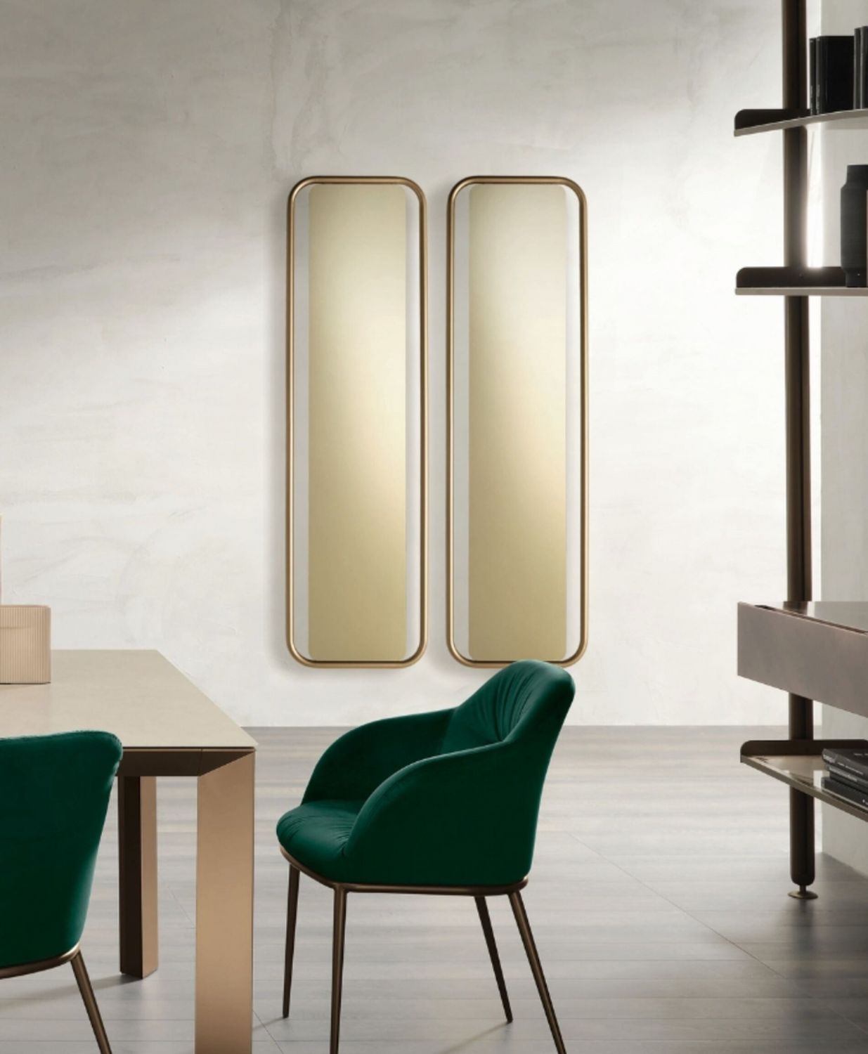 El espejo Iris de Riflessi es una pieza de diseño refinado que aporta luz, profundidad y un estilo contemporáneo a tus paredes. Su silueta alargada y armoniosa se enmarca con un tubo metálico pintado que rodea el espejo con suavidad y elegancia, creando un equilibrio perfecto entre función y estética. Este diseño delicado captura y refleja la luz de forma natural, expandiendo visualmente los interiores y añadiendo una sensación de apertura y sofisticación moderna en salones, recibidores o dormitorios.