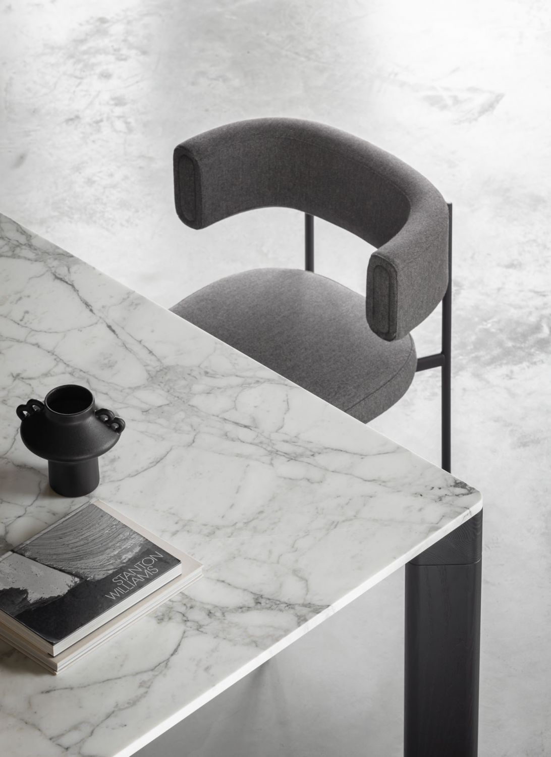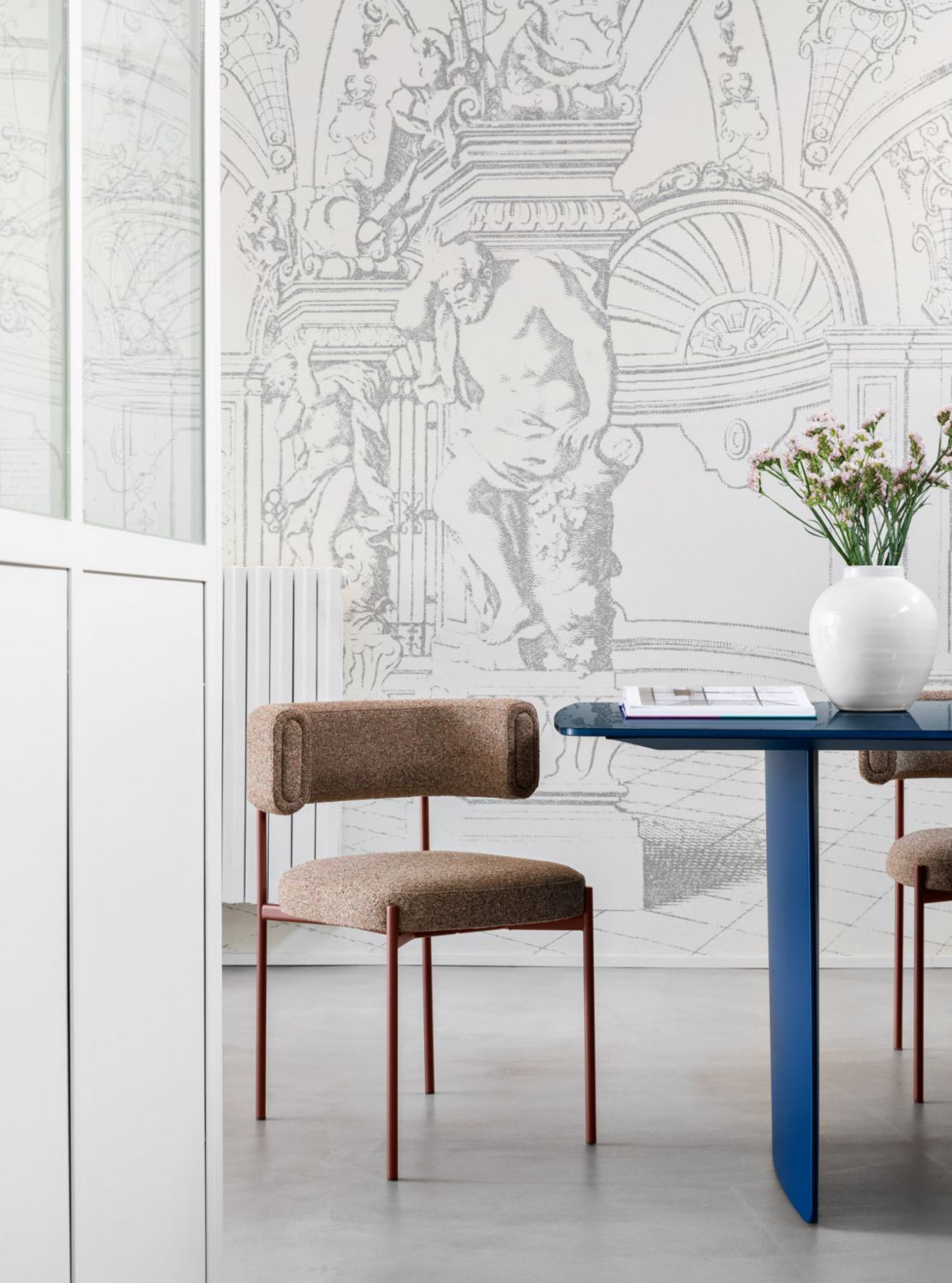 Las sillas y butacas Amelie combinan el encanto retro de una época elegante con una sensibilidad contemporánea. Su estructura fina, ligera y casi invisible parece desafiar la gravedad, soportando asientos y respaldos llenos y envolventes que invitan a sentarse y dejarse llevar por la comodidad. La silla, con el respaldo ligeramente más corto, acompaña delicadamente la postura, mientras que la butaca abraza a quien se sienta en un abrazo elegante y relajante. La composición armoniosa entre estructura, asiento y respaldo crea una sensación de suspensión, como si Amelie flotara en el espacio. Cada detalle está pensado para ser personalizable, desde los tejidos hasta los colores, incluyendo los insertos a contraste, permitiendo que cada interpretación sea única. Ligera, elegante y sorprendentemente envolvente, Amelie está firmada Midj.