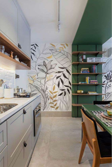 Si, d'un autre côté, vous voulez quelque chose de plus extraverti et complexe, vous pouvez toujours vous tourner vers des décorateurs qui peuvent créer une véritable œuvre d'art qui fait un plafond et un mur, interprétant l'ambiance la plus désirée d'aujourd'hui, à savoir la nature.