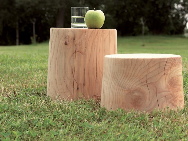 Tables d'extérieur / tabouret en cèdre parfumé. Produits entièrement naturels et à impact zéro : les produits « LEGNO_VIVO » ne sont disponibles qu'en bois de CÈDRE, une essence naturellement parfumée que RIVA1920 récupère à partir d'arbres tombés naturellement (en raison de phénomènes météorologiques naturels) ou par le biais d'abattages programmés et bien gérés par les différentes autorités forestières en Europe et dans le bassin méditerranéen.