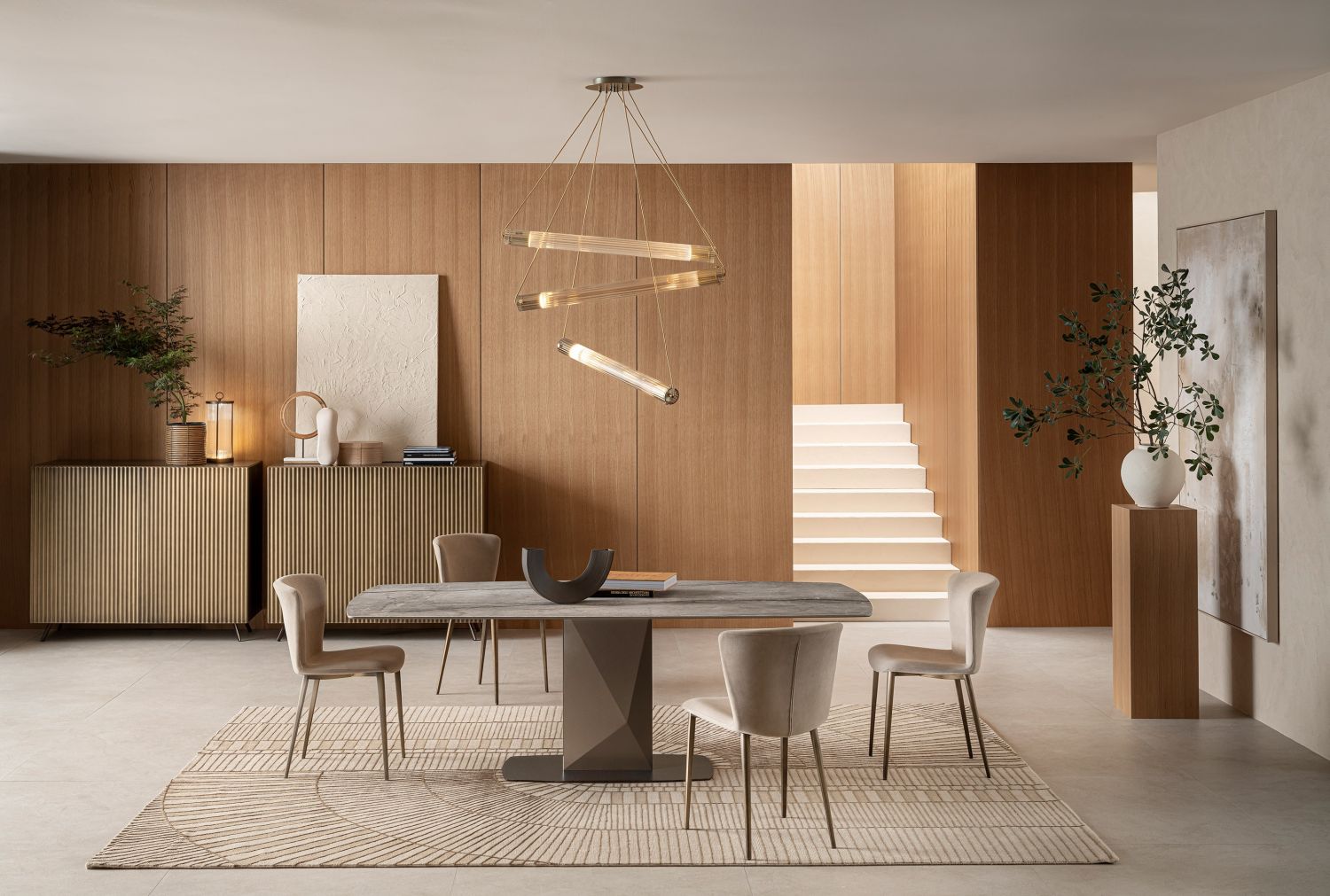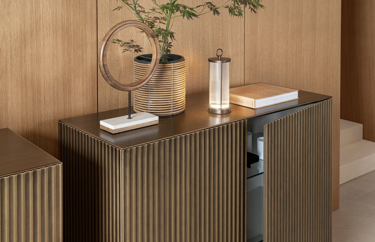 Disponible en version suspendue et en version au sol, le buffet Onda offre une grande flexibilité de conception. La version suspendue crée un effet léger et aérien, idéal pour les intérieurs modernes et minimalistes. La version au sol apporte plus de présence et de stabilité, parfaite pour les salons ou salles à manger structurés. Dans les deux cas, Onda devient un élément central de l’espace.