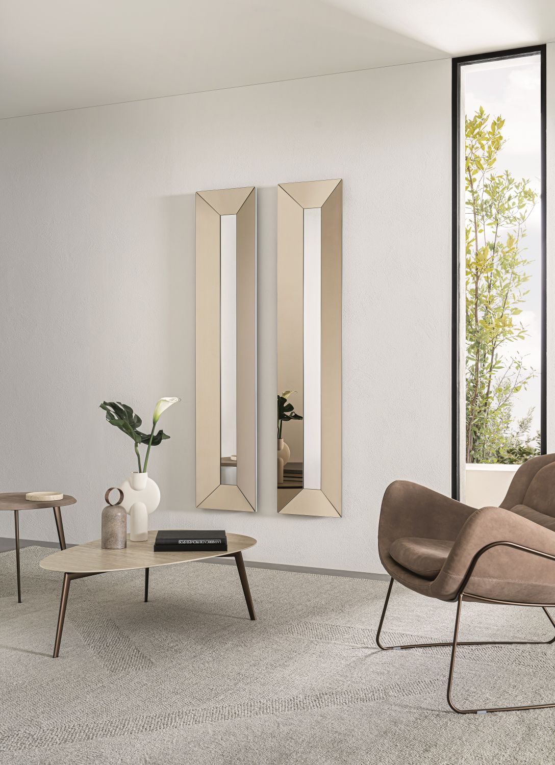 Plus qu’un miroir fonctionnel, Trapezio devient une œuvre d’art qui dialogue avec l’espace environnant, amplifiant la lumière naturelle et mettant en valeur le mobilier. Sa silhouette trapézoïdale, moderne et originale, ajoute rythme visuel et personnalité aux pièces.